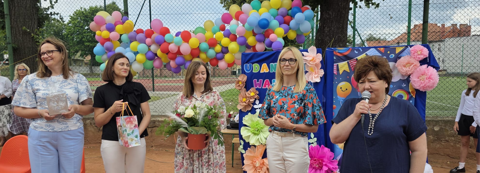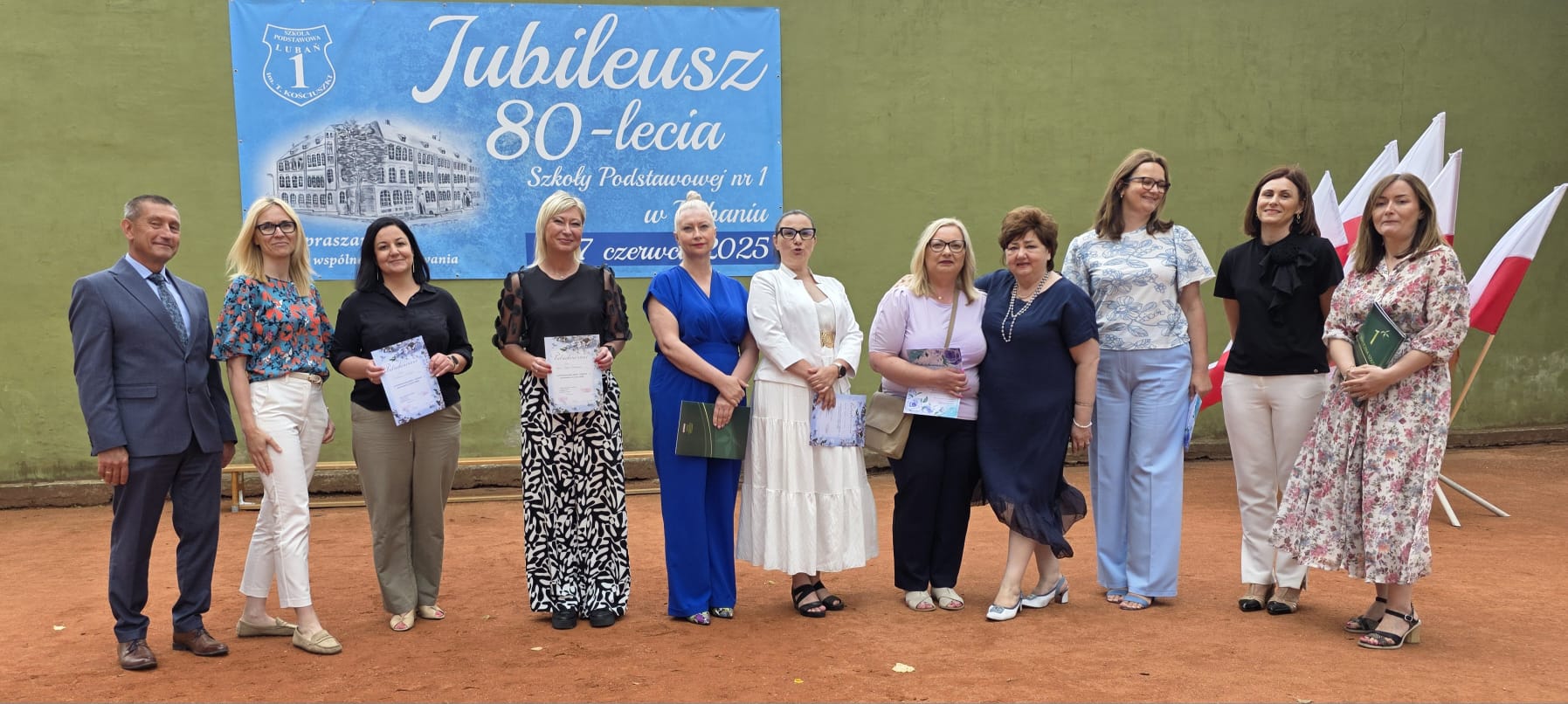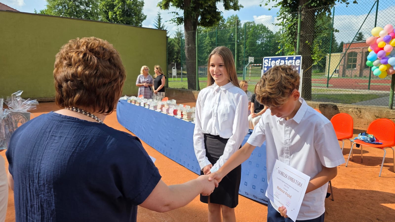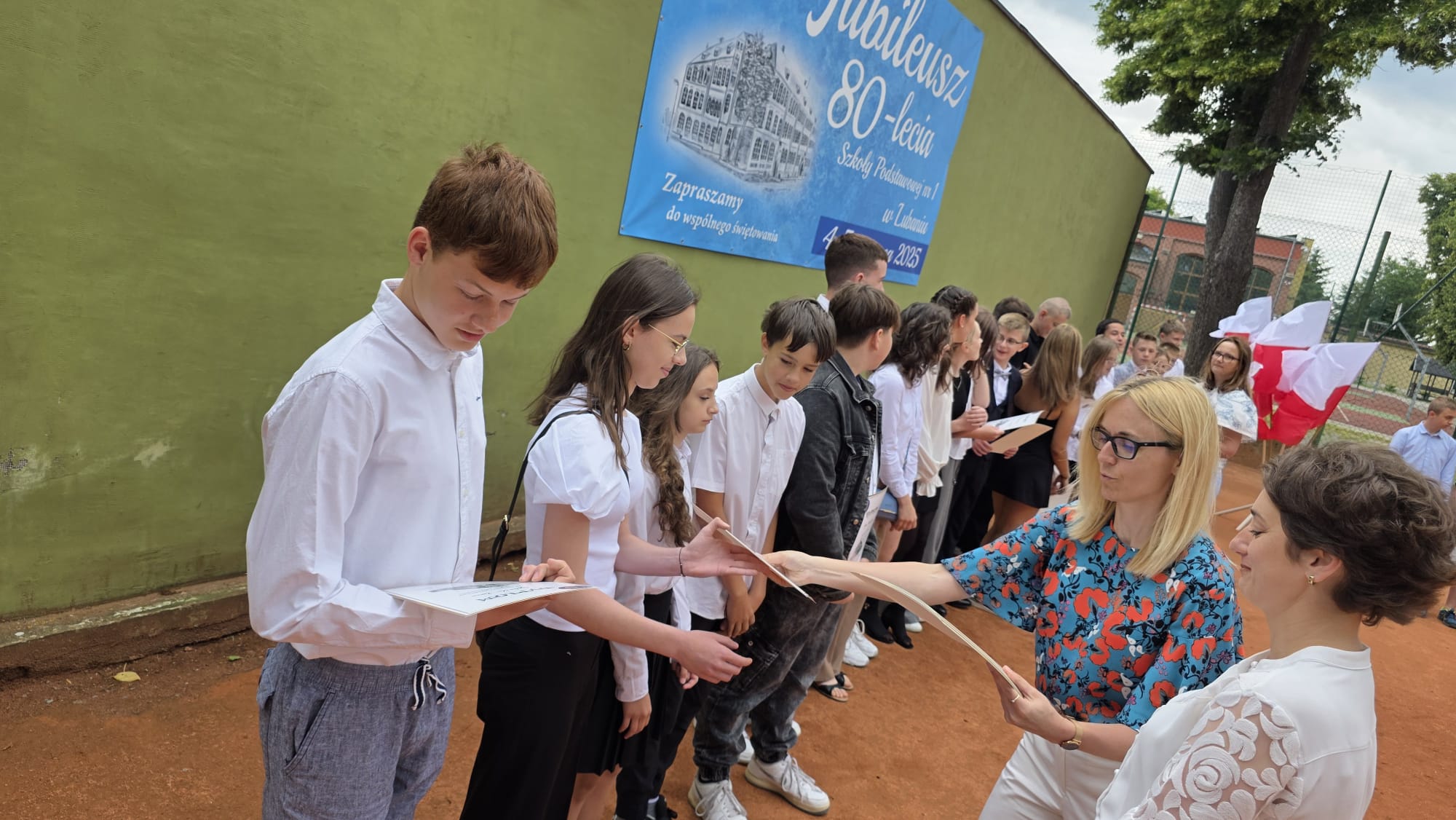 W letni, słoneczny piątek (27 czerwca), w SP1, odbyły się uroczyste zakończenia roku szkolnego 2024/2025 w turach dla kl. I-V i VI-VIII. Najpierw Pani Dyrektor Jedynki Beata Myśliwiec serdecznie podziękowała wszystkim za trud, starania oraz pracę wykonaną przez ostatnich 10 miesięcy. Później wręczyła wyróżniającym się uczniom nagrody i świadectwa z czerwonym paskiem, a także pogratulowała licznych sukcesów. Szczególnym momentem apelów były występy artystyczne, w tym pożegnanie czterech wyjątkowych klas: 8abcd, które całą uroczystość uświetniły przepięknym odtańczeniem poloneza. Szczególne i serdeczne podziękowania należą się rodzicom naszych uczniów za wszelką udzielaną nam pomoc, a także życzliwą współpracę. Dziękujemy pięknie wszystkim za kolejny, owocny rok szkolny. Życzymy całej społeczności SP1 – bezpiecznych, pogodnych, pełnych radości i relaksu wakacji! Do zobaczenia już niebawem, tj. 1 września!
