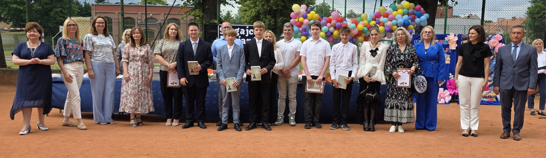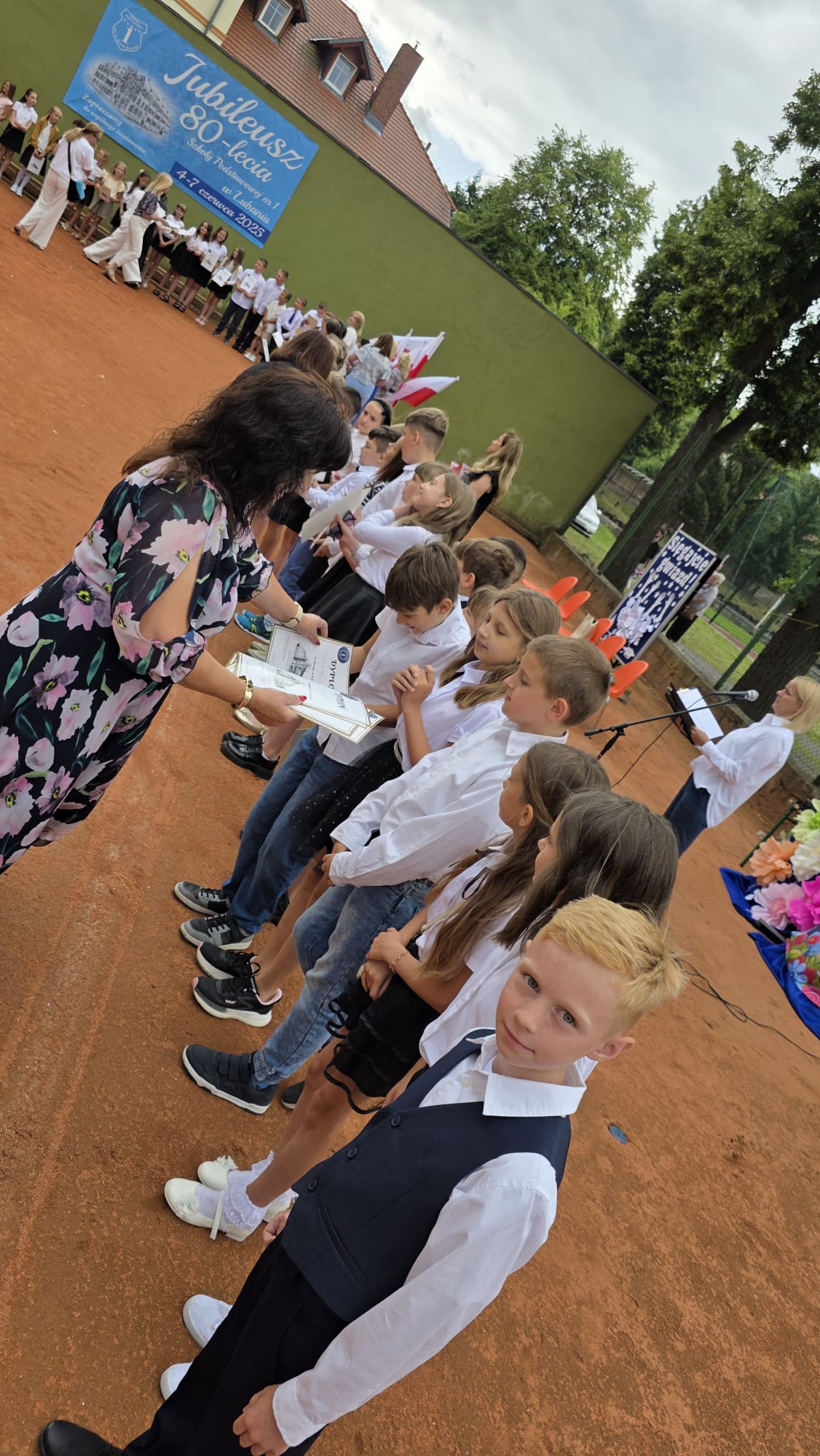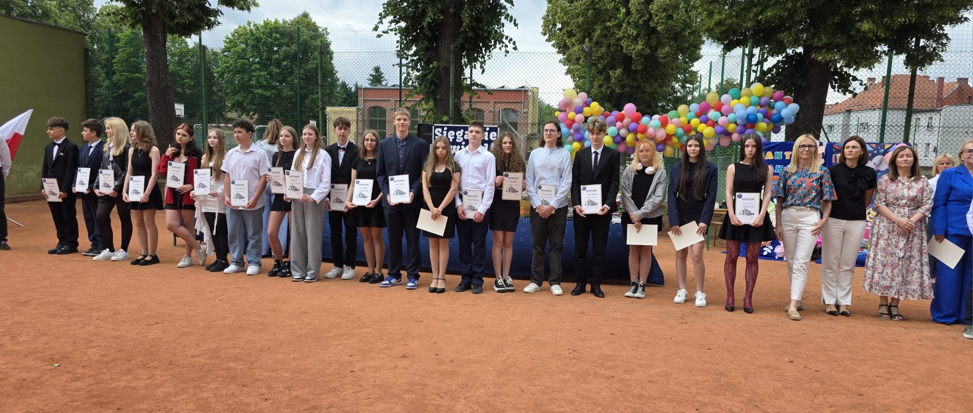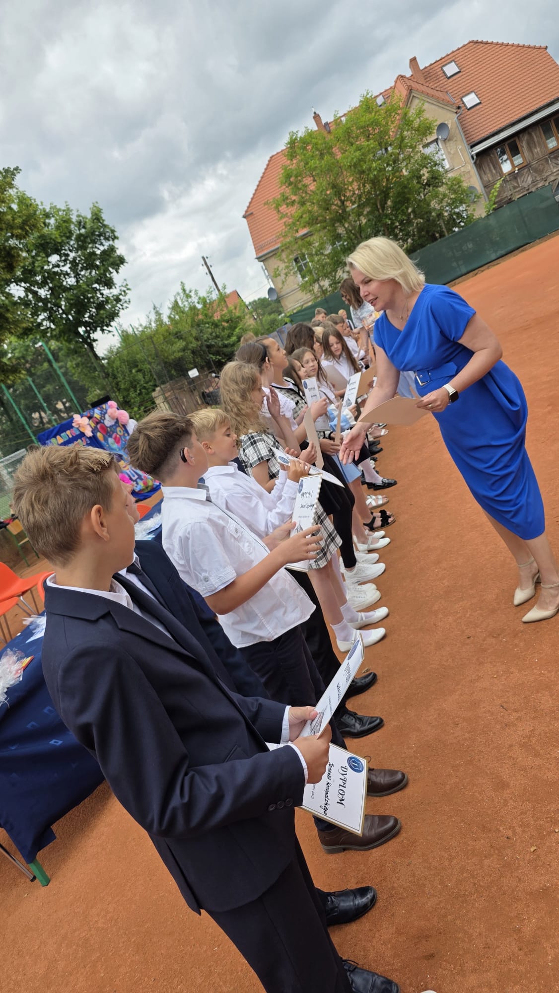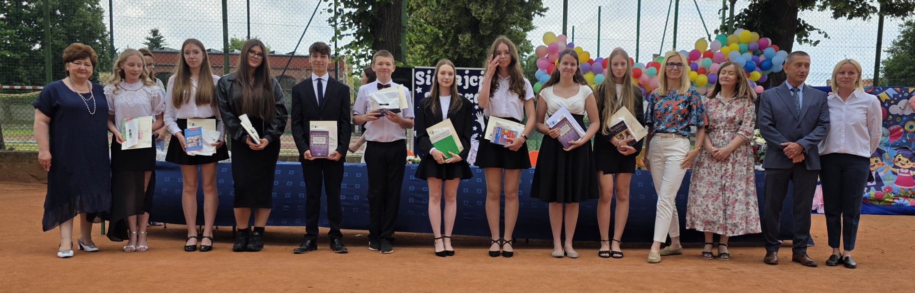 W letni, słoneczny piątek (27 czerwca), w SP1, odbyły się uroczyste zakończenia roku szkolnego 2024/2025 w turach dla kl. I-V i VI-VIII. Najpierw Pani Dyrektor Jedynki Beata Myśliwiec serdecznie podziękowała wszystkim za trud, starania oraz pracę wykonaną przez ostatnich 10 miesięcy. Później wręczyła wyróżniającym się uczniom nagrody i świadectwa z czerwonym paskiem, a także pogratulowała licznych sukcesów. Szczególnym momentem apelów były występy artystyczne, w tym pożegnanie czterech wyjątkowych klas: 8abcd, które całą uroczystość uświetniły przepięknym odtańczeniem poloneza. Szczególne i serdeczne podziękowania należą się rodzicom naszych uczniów za wszelką udzielaną nam pomoc, a także życzliwą współpracę. Dziękujemy pięknie wszystkim za kolejny, owocny rok szkolny. Życzymy całej społeczności SP1 – bezpiecznych, pogodnych, pełnych radości i relaksu wakacji! Do zobaczenia już niebawem, tj. 1 września!
