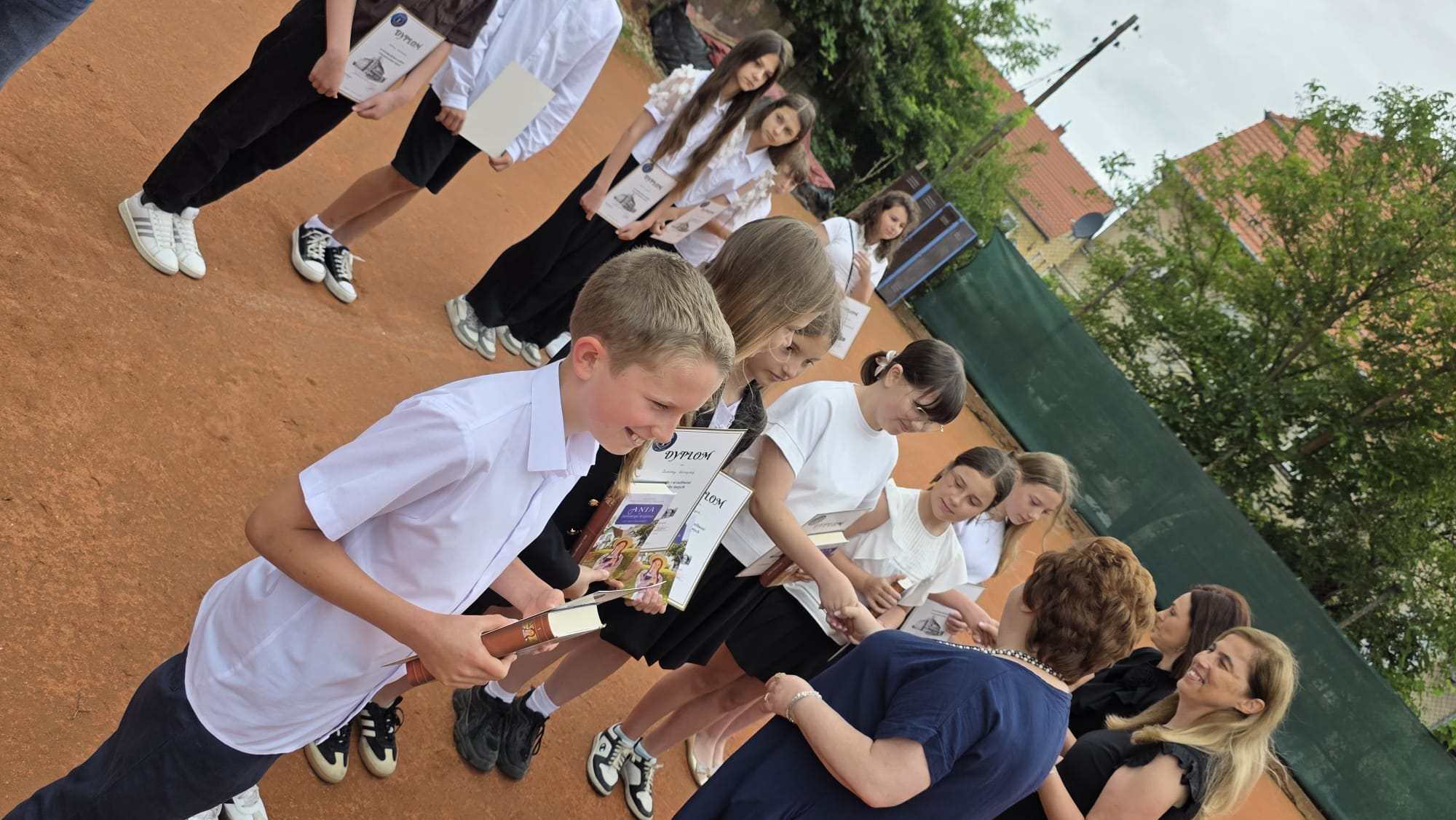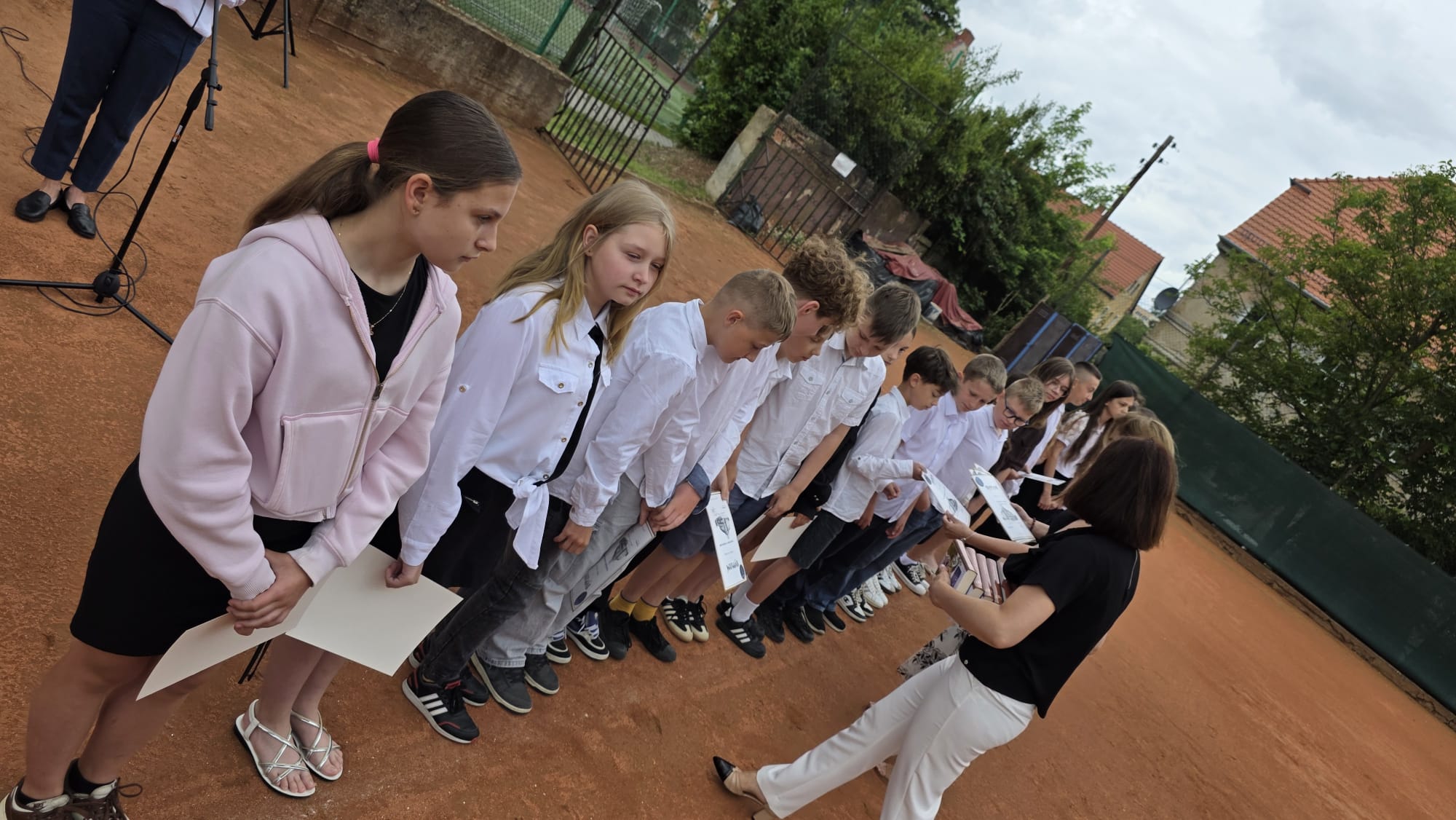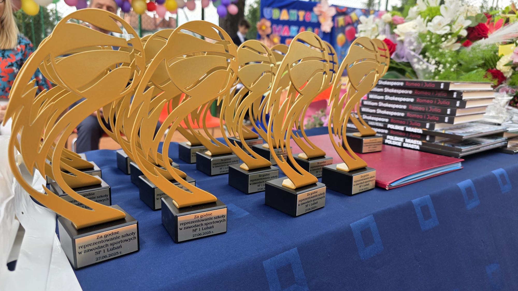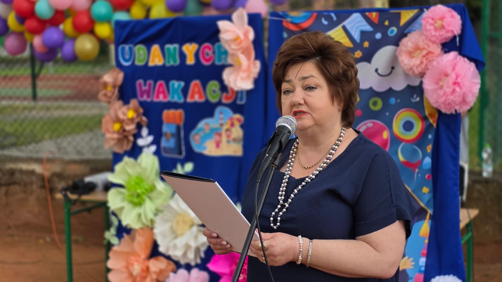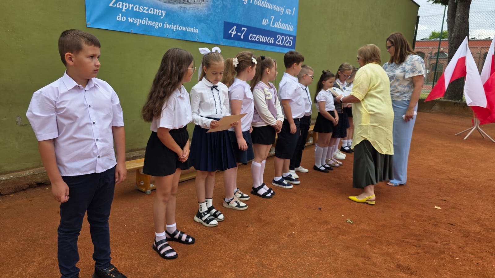 W letni, słoneczny piątek (27 czerwca), w SP1, odbyły się uroczyste zakończenia roku szkolnego 2024/2025 w turach dla kl. I-V i VI-VIII. Najpierw Pani Dyrektor Jedynki Beata Myśliwiec serdecznie podziękowała wszystkim za trud, starania oraz pracę wykonaną przez ostatnich 10 miesięcy. Później wręczyła wyróżniającym się uczniom nagrody i świadectwa z czerwonym paskiem, a także pogratulowała licznych sukcesów. Szczególnym momentem apelów były występy artystyczne, w tym pożegnanie czterech wyjątkowych klas: 8abcd, które całą uroczystość uświetniły przepięknym odtańczeniem poloneza. Szczególne i serdeczne podziękowania należą się rodzicom naszych uczniów za wszelką udzielaną nam pomoc, a także życzliwą współpracę. Dziękujemy pięknie wszystkim za kolejny, owocny rok szkolny. Życzymy całej społeczności SP1 – bezpiecznych, pogodnych, pełnych radości i relaksu wakacji! Do zobaczenia już niebawem, tj. 1 września!