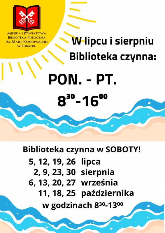 Zapraszamy także w wakacyjne soboty między 8:30 a 13:00: