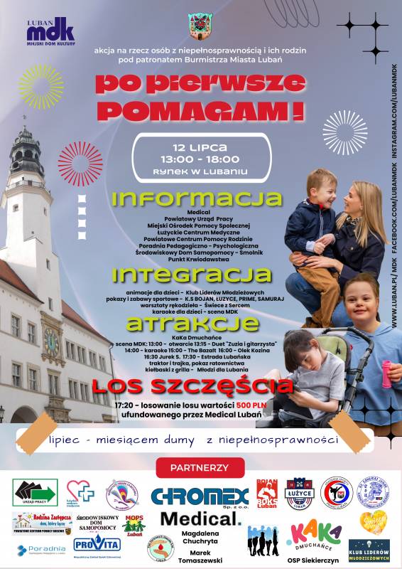 Zapraszamy w sobotę 12 lipca na Rynek w Lubaniu, gdzie odbędzie się akcja na rzecz osób z niepełnosprawnością i ich rodzin - wydarzenie pod patronatem Burmistrza Miasta Lubań Grzegorza Wieczorka.