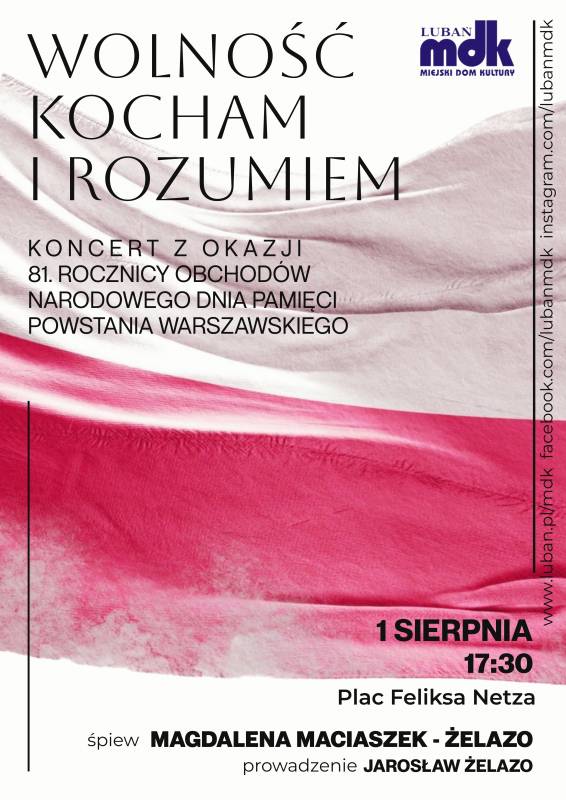 Zapraszamy na koncert z okazji obchodów 81. rocznicy narodowego dnia pamięci Powstania Warszawskiego.