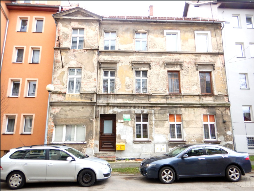 Układ funkcjonalny lokalu przeciętny. Stan techniczny lokalu i standard wykończenia wnętrz podstawowy. Podłogi w mieszkaniu drewniane. Ściany tynkowane, malowane. Stolarka okienna drewniana, drzwi drewniane, drzwi zewnętrzne drewniane. Wysokość pomieszczeń mieszkalnych 3,10 m. Ogrzewanie lokalu – piecowe. Funkcjonalność lokalu przeciętna, z uwagi na brak w lokalu łazienki i wejście do wc z kuchni. Przedmiotowy lokal mieszkalny znajduje się w stanie wymagającym kapitalnego remontu. Wymiany wymagają wszystkie instalacje wewnętrzne, stolarka okienna i drzwiowa oraz modernizacja systemu ogrzewania. Brak wyposażenia kuchni. Lokal mieszkalny został odłączony od siei gazowej. Licznik gazu został zdemontowany przez dostawcę mediów.
