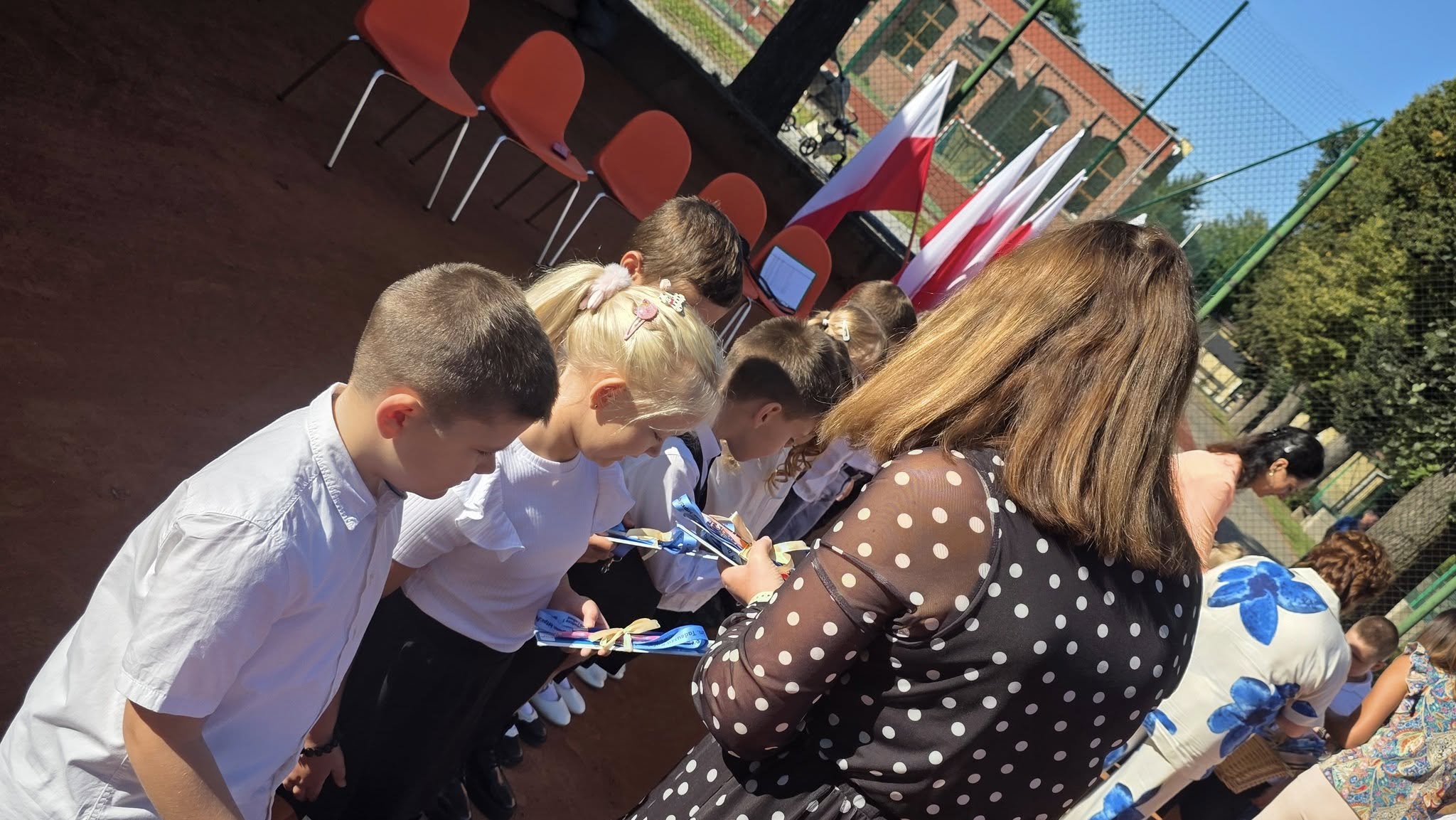W poniedziałek, 1 września br., na korcie tenisowym w SP nr 1 w Lubaniu, odbył się uroczysty apel z okazji inauguracji nowego roku szkolnego 2025/2026. Po ponad dwóch miesiącach rozłąki z nauką społeczność Jedynki spotkała się ponownie, aby wspólnie celebrować ten szczególny dzień. Podczas apelu wysłuchaliśmy krótkich i motywujących przemówień: dyrektor placówki – p. Beaty Myśliwiec, inspektor referatu edukacji miasta Lubań – p. Marleny Kiełdanowicz i nowej przewodniczącej Rady Rodziców – p. Alicji Krężel. Zostały one nagrodzone gromkimi brawami. Dodatkowo powitaliśmy też tegorocznych pierwszoklasistów.Teraz przed nami kolejne wyzwania oraz nowe, ciekawe pomysły do realizacji. Ponadto, na początku bieżącego roku szkolnego, życzymy wszystkim, aby był on spokojny i bezpieczny, obfitował w sukcesy edukacyjne oraz wychowawcze. Natomiast naszym uczniom życzymy, by mieli niesamowitą radość z odkrywania małych i wielkich tajemnic wiedzy, a nauczycielom – ogromu satysfakcji z pracy z dziećmi i licznych sukcesów zawodowych.