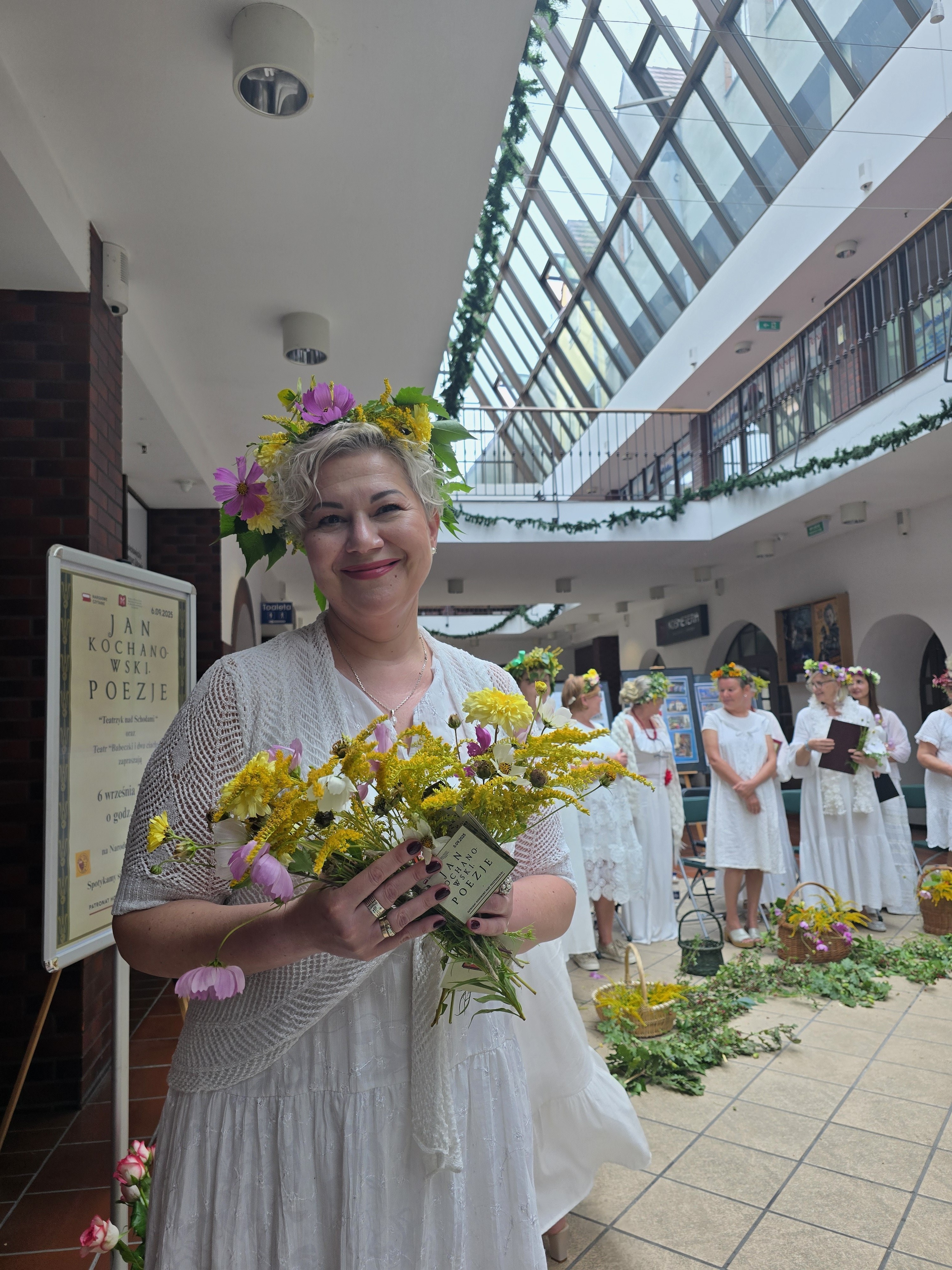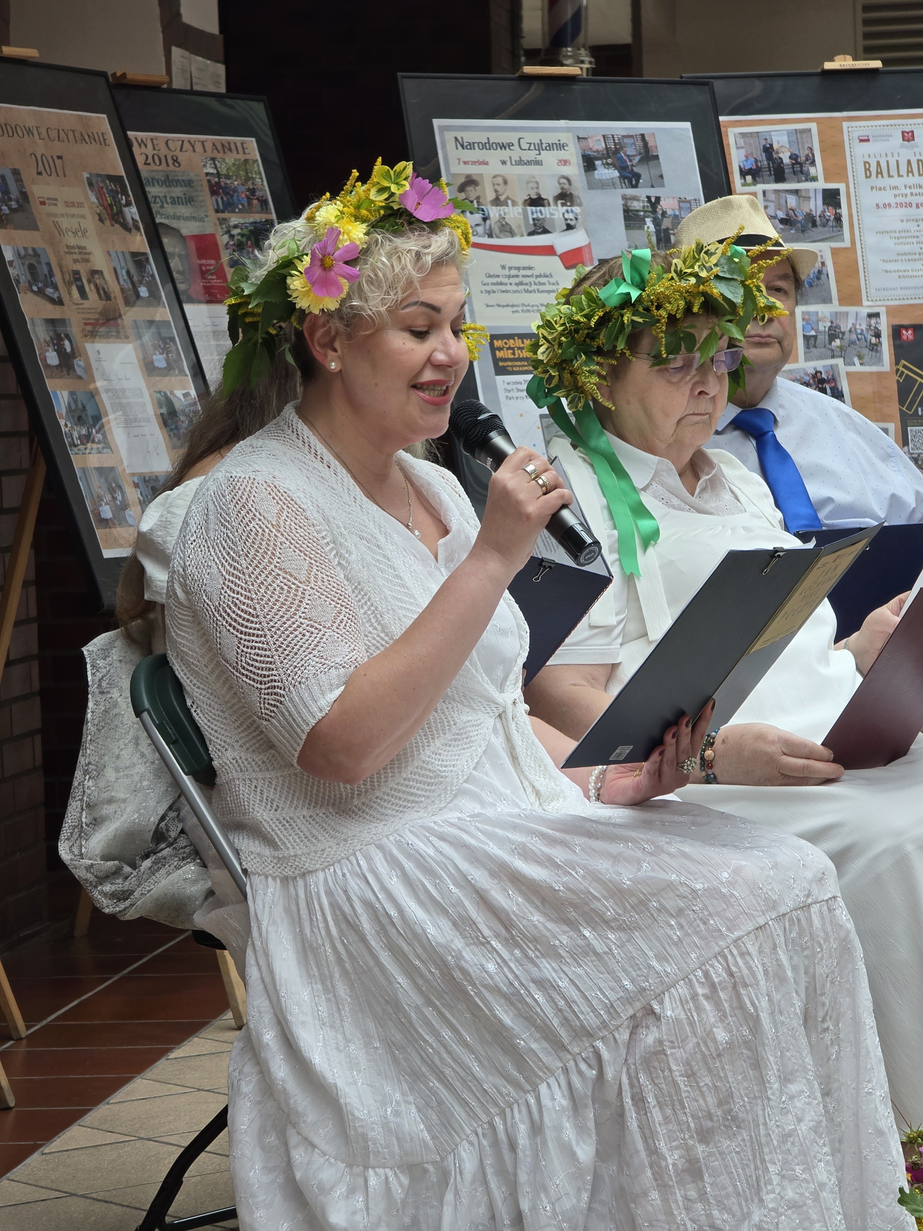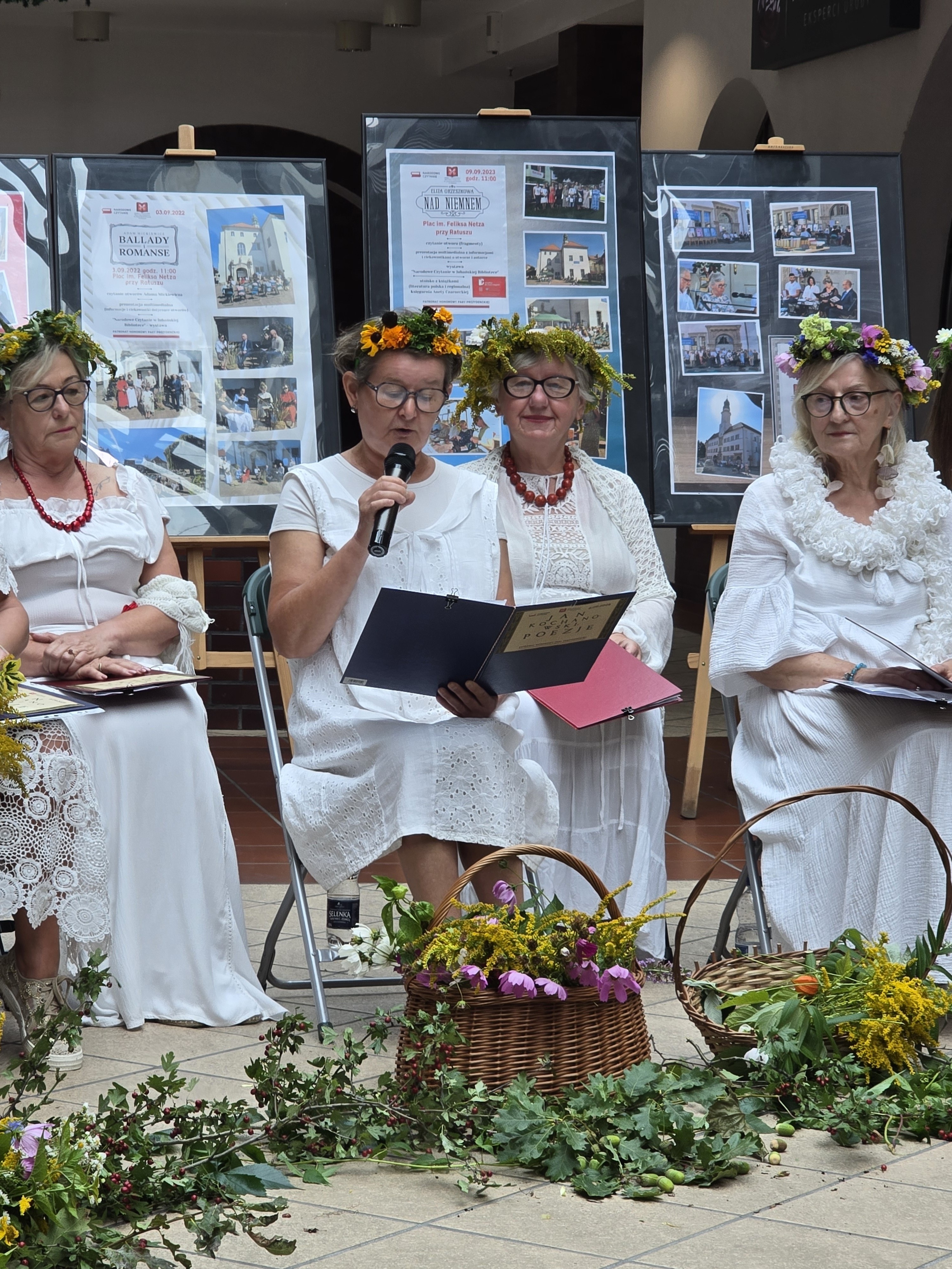Teatr „Babeczki i dwa ciacha”. W zwiewnych, jasnych strojach, z wiankami z polnych kwiatów wyglądali zjawiskowo. Ich interpretacja utworów nabrała dzięki ich zaangażowaniu nowego blasku. Piękny był koncept układania podczas wystąpienia przepięknych bukiecików, które, na pamiątkę wydarzenia, otrzymał każdy z uczestników.
