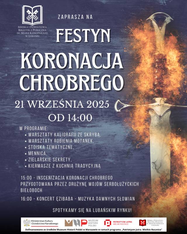 Wydarzenie zostanie przygotowane jako element zadania „Korona dla Polski. 1000 lat Chrobrego”, realizowanego w ramach programu „Patriotyzm Jutra. Wielkie Rocznice”, współfinansowanego ze środków Muzeum Historii Polski.”