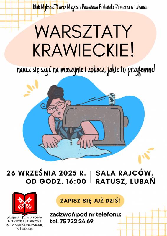 Kiedy słońce coraz niżej, budzą się… warsztaty krawieckie! Z przyjemnością przychodzimy do Państwa z informację, że razem ze Klubem Kobiet MykobieTy wznawiamy warsztaty krawieckie.