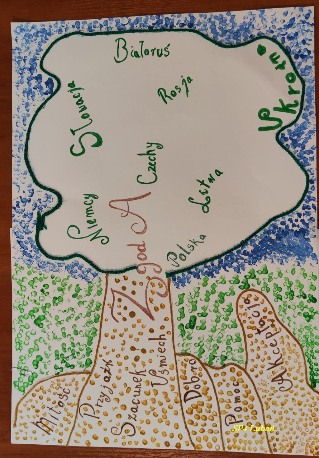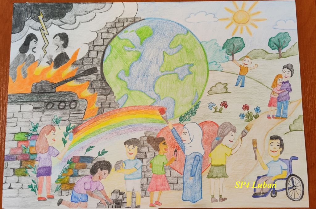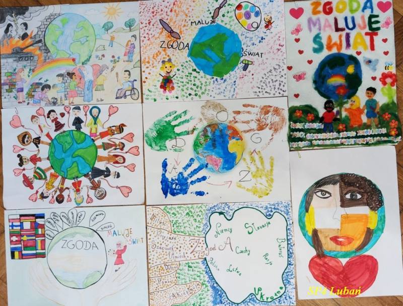 Nasi uczniowie: Laura Skiba, Adela Wrzeszcz, Alicja Dudek, Nadia Wrzeszcz, Lena Skiba, Natalia Bednarska, Paweł Węgrzyn i Justyna Łubkowska włożyli ogrom serca i kreatywności w swoje dzieła, które w różnorodnych technikach plastycznych pokazują, czym dla nich jest zgoda – tworząc barwne kompozycje podkreślające siłę wspólnoty. Każda praca jest indywidualną wizją młodego artysty i dowodem jego wrażliwości.