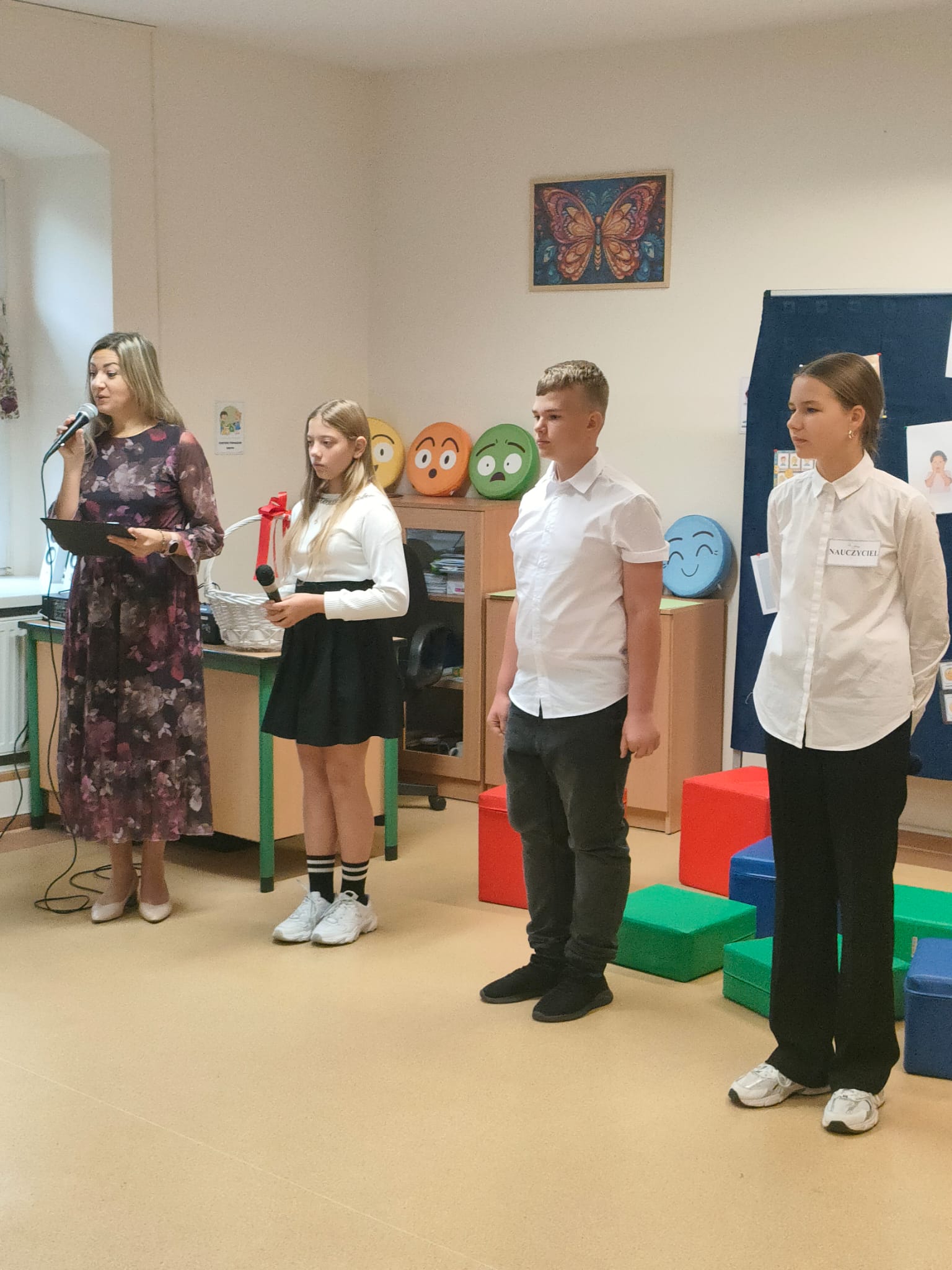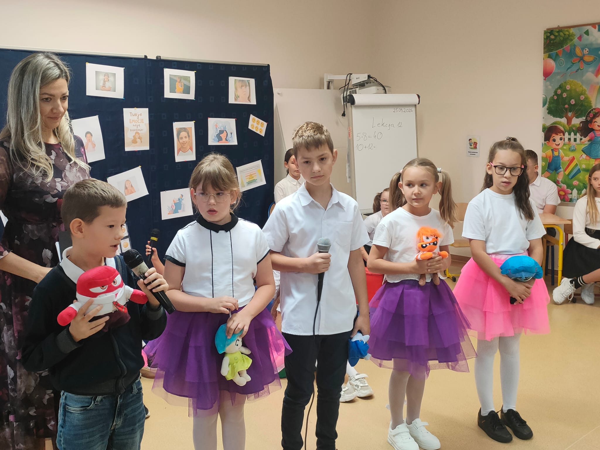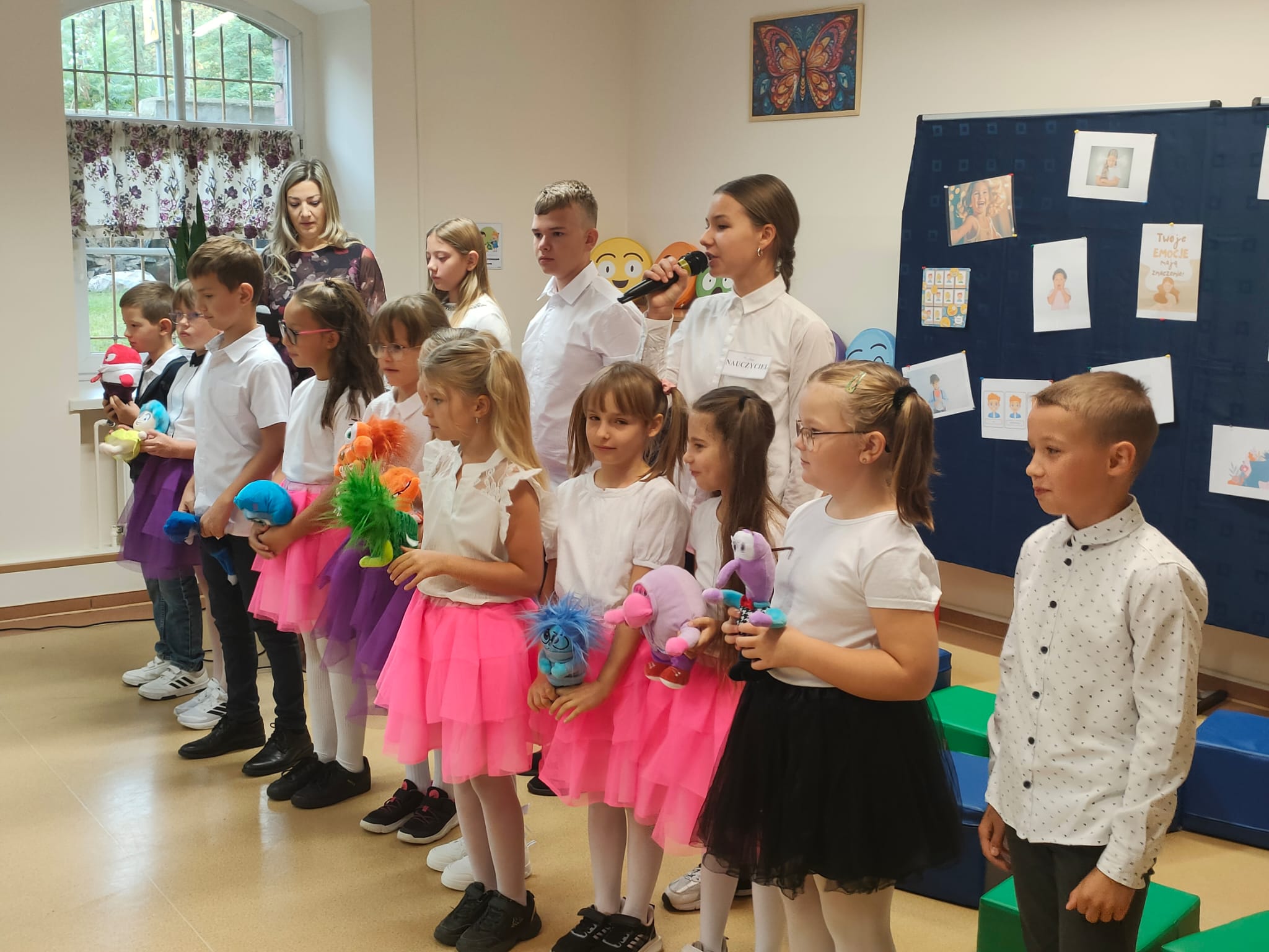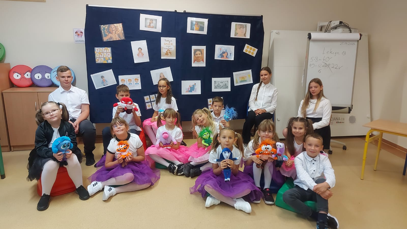 Podkreślono, że to właśnie nasze emocje i zdrowie psychiczne pomagają nam w pełni doświadczać szczęścia i dzielić się nim z innymi. Podczas apelu uczniowie z klasy 2b: Emilia Murczak, Maja Myśliwiec, Wojciech Ossowski, Joanna Barańska, Pola Kulczycka, Oliwia Mowczko, Karolina Pierz, Natalia Okraszewska, Antonina Czarniecka, Andrzej Toniawski oraz Antoni Bereziuk z klasy 4b wraz z przedstawicielami Samorządu Uczniowskiego w składzie: Alicja Kicuła (kl. 6a), Natan Nowosielski (kl. 5b), Karina Toniawska (kl. 6c) opowiadali swoim kolegom i koleżankom o tym, jak ważne jest dbanie o emocje, ich akceptacja i wzajemne wsparcie. Ważnym przesłaniem spotkania były hasła: „STOP HEJT!”, „ZDROWIE PSYCHICZNE TO NASZA SIŁA!” Celem wydarzenia było przede wszystkim podniesienie świadomości uczniów na temat zdrowia psychicznego, nauka rozpoznawania i wyrażania emocji, budowanie pozytywnej atmosfery w szkole. Uczniowie mogli nie tylko posłuchać swoich rówieśników, ale także poćwiczyć techniki uspokojenia, nauczyć się rozpoznawania emocji oraz zobaczyć, jak można wspierać innych w trudnych chwilach. Młodzi artyści przygotowali program artystyczny – były piosenki, tańce, scenki teatralne i ćwiczenia ruchowe. Publiczność żywo reagowała na każdy występ, nagradzając artystów gromkimi brawami. To był naprawdę niezwykły apel – pełen radości, pozytywnej energii i ważnych treści. Spotkanie pokazało, że razem możemy budować szkołę, w której każdy czuje się bezpieczny, akceptowany i szczęśliwy. Osobą odpowiedzialną za przygotowanie wydarzenia była psycholog – pani Anna Toniawska.