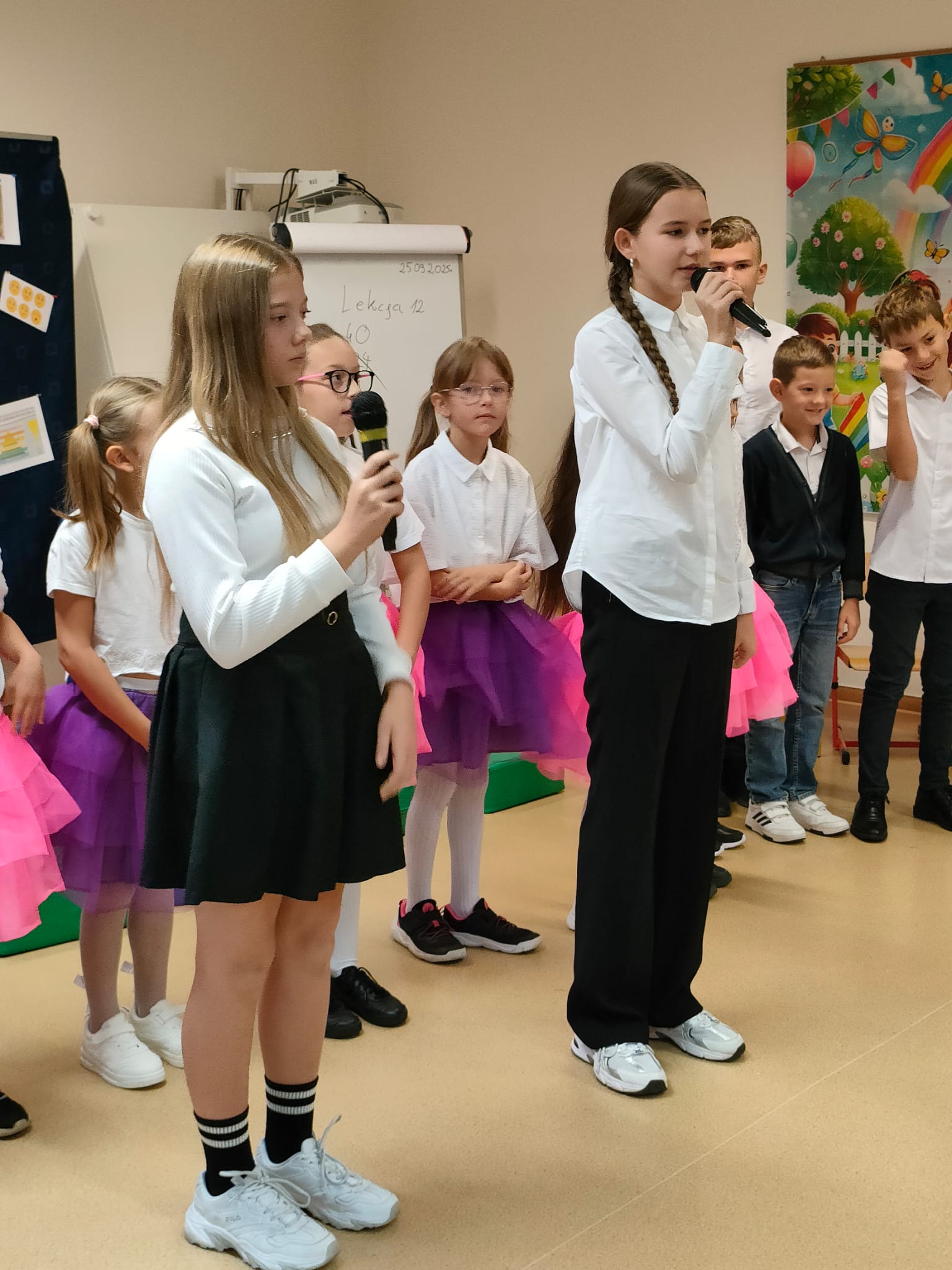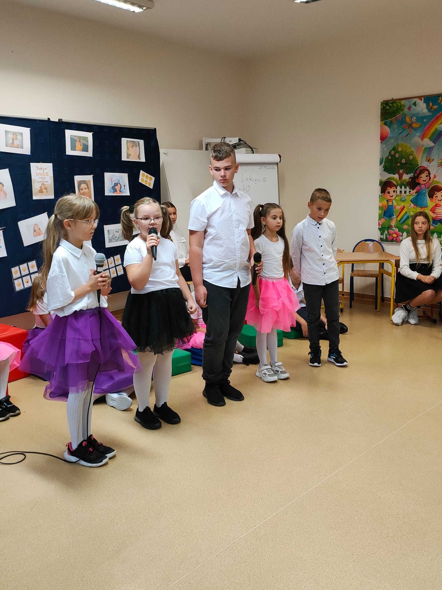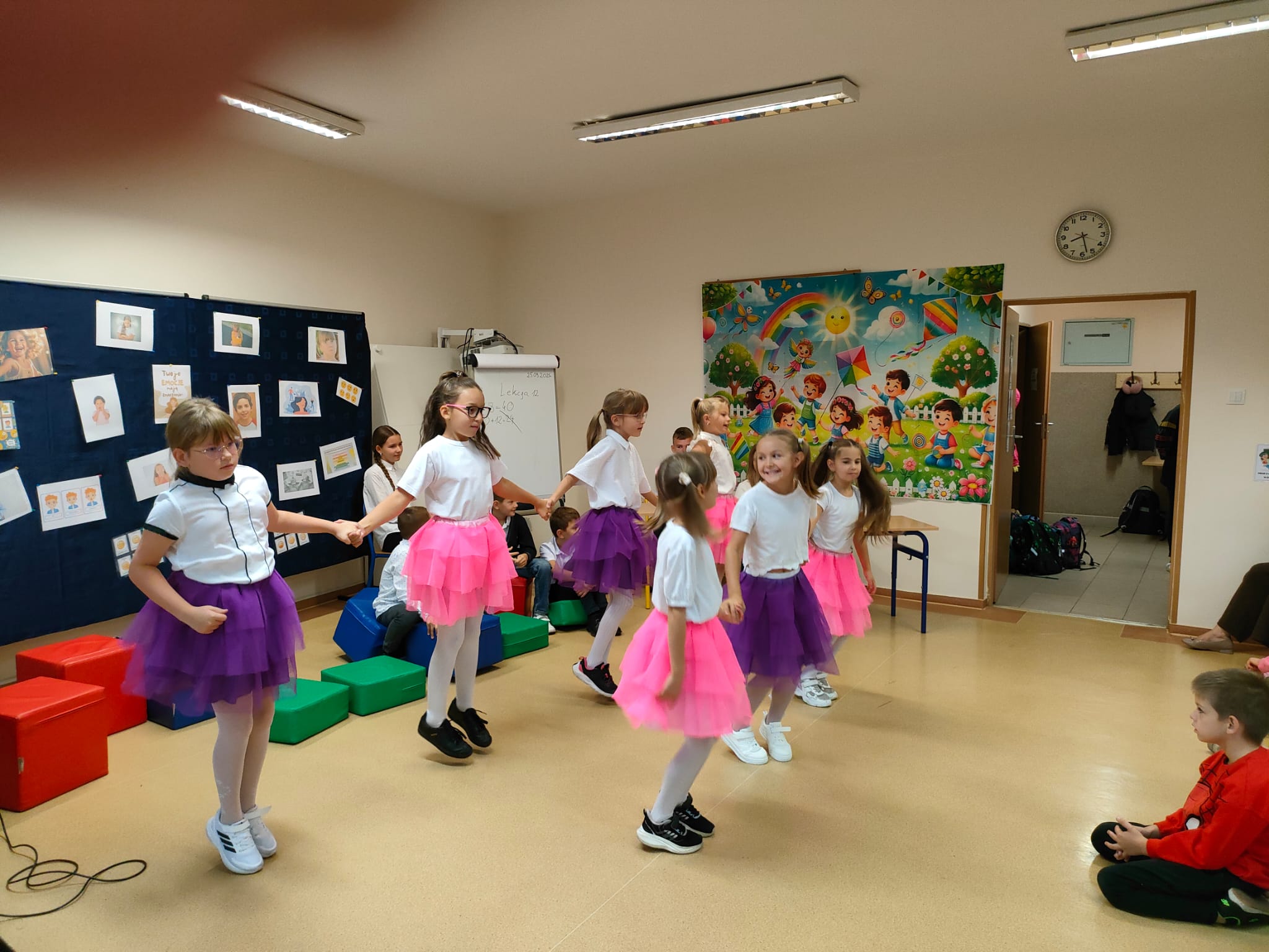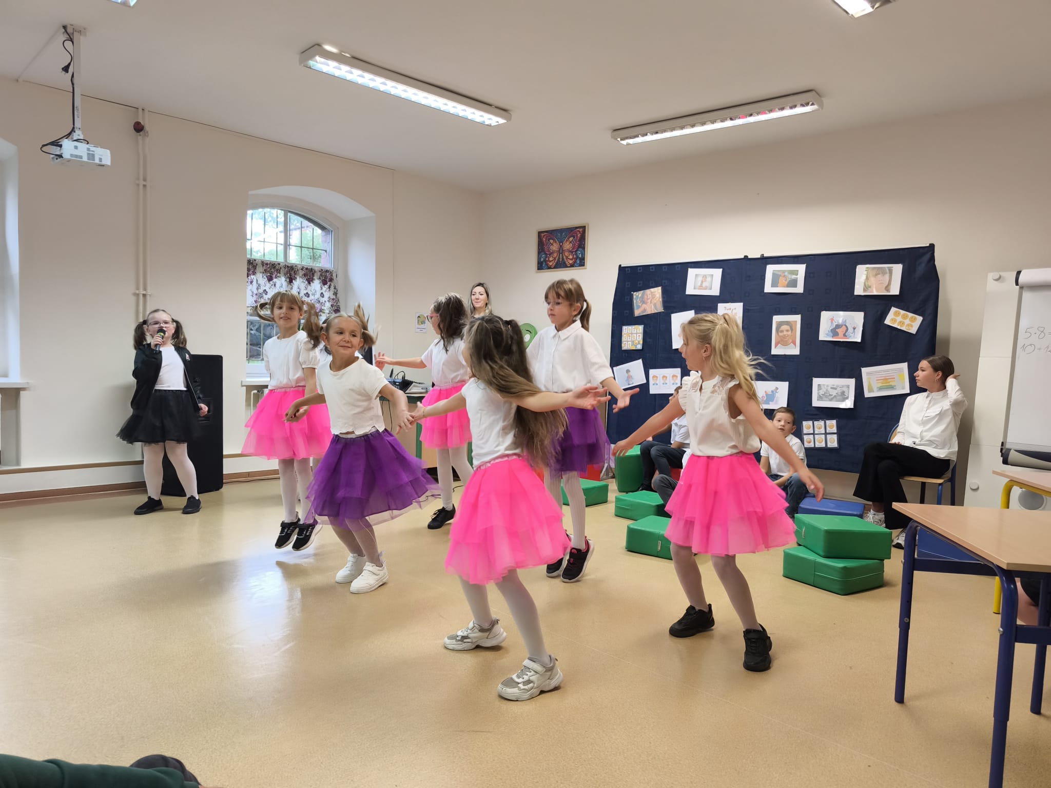 Podkreślono, że to właśnie nasze emocje i zdrowie psychiczne pomagają nam w pełni doświadczać szczęścia i dzielić się nim z innymi. Podczas apelu uczniowie z klasy 2b: Emilia Murczak, Maja Myśliwiec, Wojciech Ossowski, Joanna Barańska, Pola Kulczycka, Oliwia Mowczko, Karolina Pierz, Natalia Okraszewska, Antonina Czarniecka, Andrzej Toniawski oraz Antoni Bereziuk z klasy 4b wraz z przedstawicielami Samorządu Uczniowskiego w składzie: Alicja Kicuła (kl. 6a), Natan Nowosielski (kl. 5b), Karina Toniawska (kl. 6c) opowiadali swoim kolegom i koleżankom o tym, jak ważne jest dbanie o emocje, ich akceptacja i wzajemne wsparcie. Ważnym przesłaniem spotkania były hasła: „STOP HEJT!”, „ZDROWIE PSYCHICZNE TO NASZA SIŁA!” Celem wydarzenia było przede wszystkim podniesienie świadomości uczniów na temat zdrowia psychicznego, nauka rozpoznawania i wyrażania emocji, budowanie pozytywnej atmosfery w szkole. Uczniowie mogli nie tylko posłuchać swoich rówieśników, ale także poćwiczyć techniki uspokojenia, nauczyć się rozpoznawania emocji oraz zobaczyć, jak można wspierać innych w trudnych chwilach. Młodzi artyści przygotowali program artystyczny – były piosenki, tańce, scenki teatralne i ćwiczenia ruchowe. Publiczność żywo reagowała na każdy występ, nagradzając artystów gromkimi brawami. To był naprawdę niezwykły apel – pełen radości, pozytywnej energii i ważnych treści. Spotkanie pokazało, że razem możemy budować szkołę, w której każdy czuje się bezpieczny, akceptowany i szczęśliwy. Osobą odpowiedzialną za przygotowanie wydarzenia była psycholog – pani Anna Toniawska.