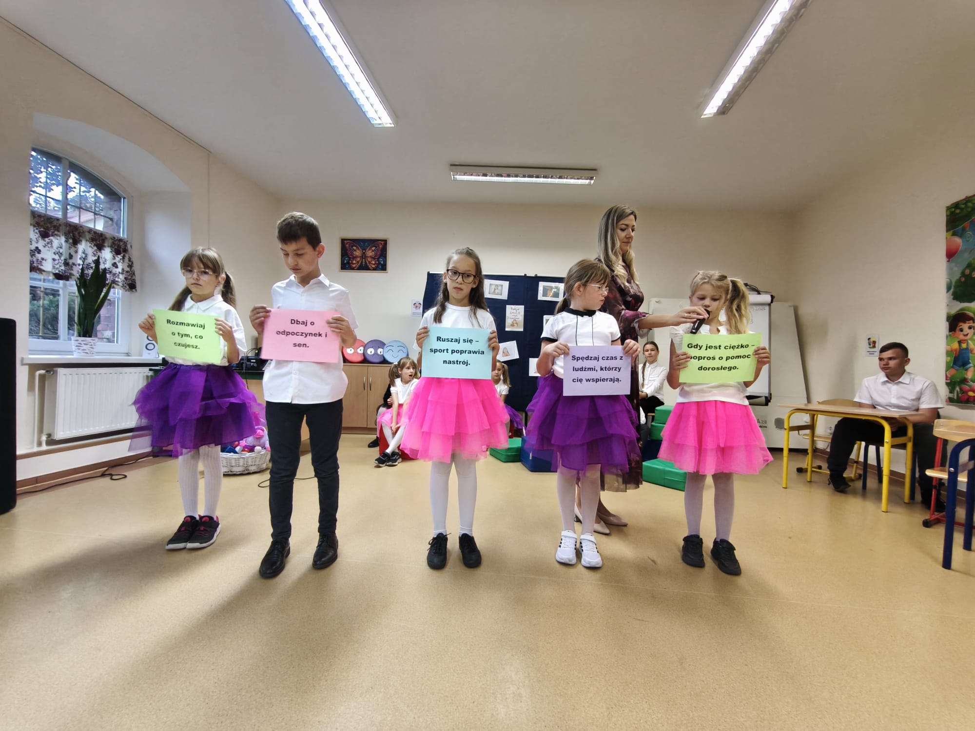 25 września br. odbył się apel pod hasłem „Dbamy o zdrowie psychiczne”. Odbiorcami wydarzenia byli uczniowie klas 1–3. Na początku spotkania przypomniano, że już wkrótce będziemy obchodzić w naszej szkole „Tydzień Szczęścia”. A czym właściwie jest szczęście? To nie tylko uśmiech i radość, ale także poczucie spokoju, bezpieczeństwa, dobre relacje z innymi oraz umiejętność cieszenia się drobiazgami.