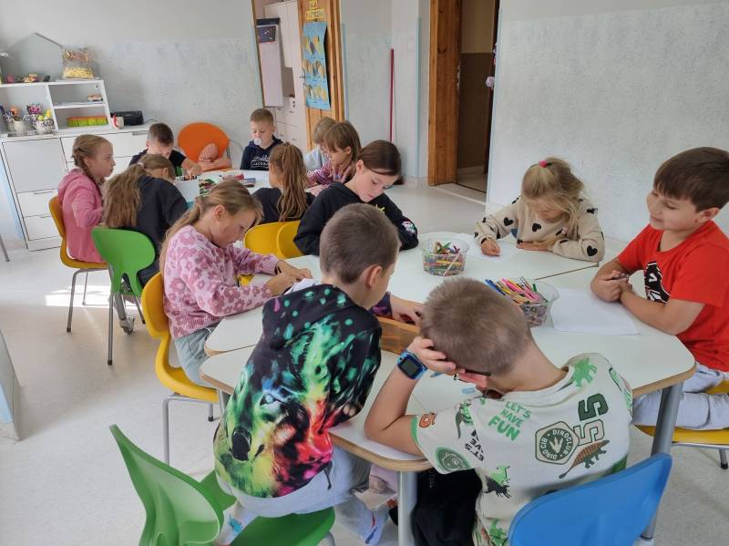 Kim będę gdy dorosnę? Za nami rozmowy na temat różnorodności zawodów na świecie. Dzieci chętnie opowiadały o tym w czym są dobre, co je interesuje i czym chciałby się zajmować zawodowo w przyszłości. Po narysowaniu siebie w pracy za kilkanaście lat, grupa zgadywała, kto i czym będzie się zajmował. W grupie było aż dwóch przyszłych policjantów, dentysta, malarka artystyczna, a nawet treserka delfinów.
