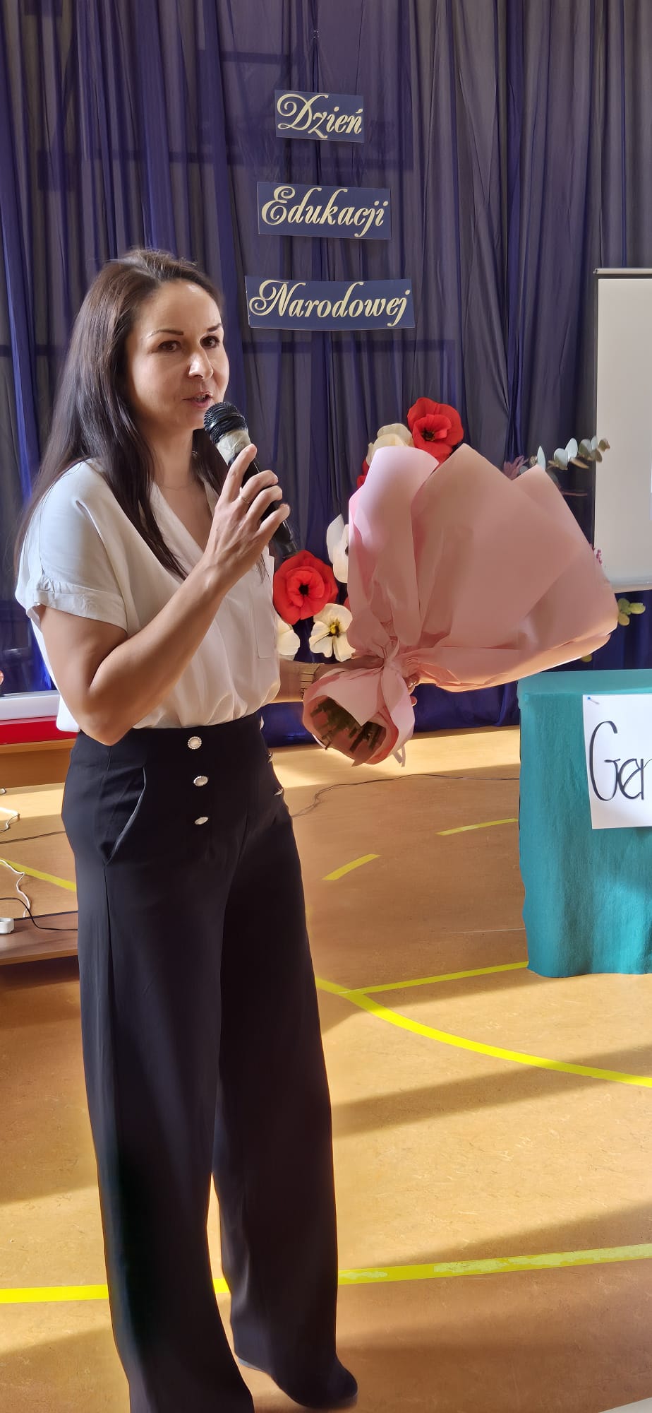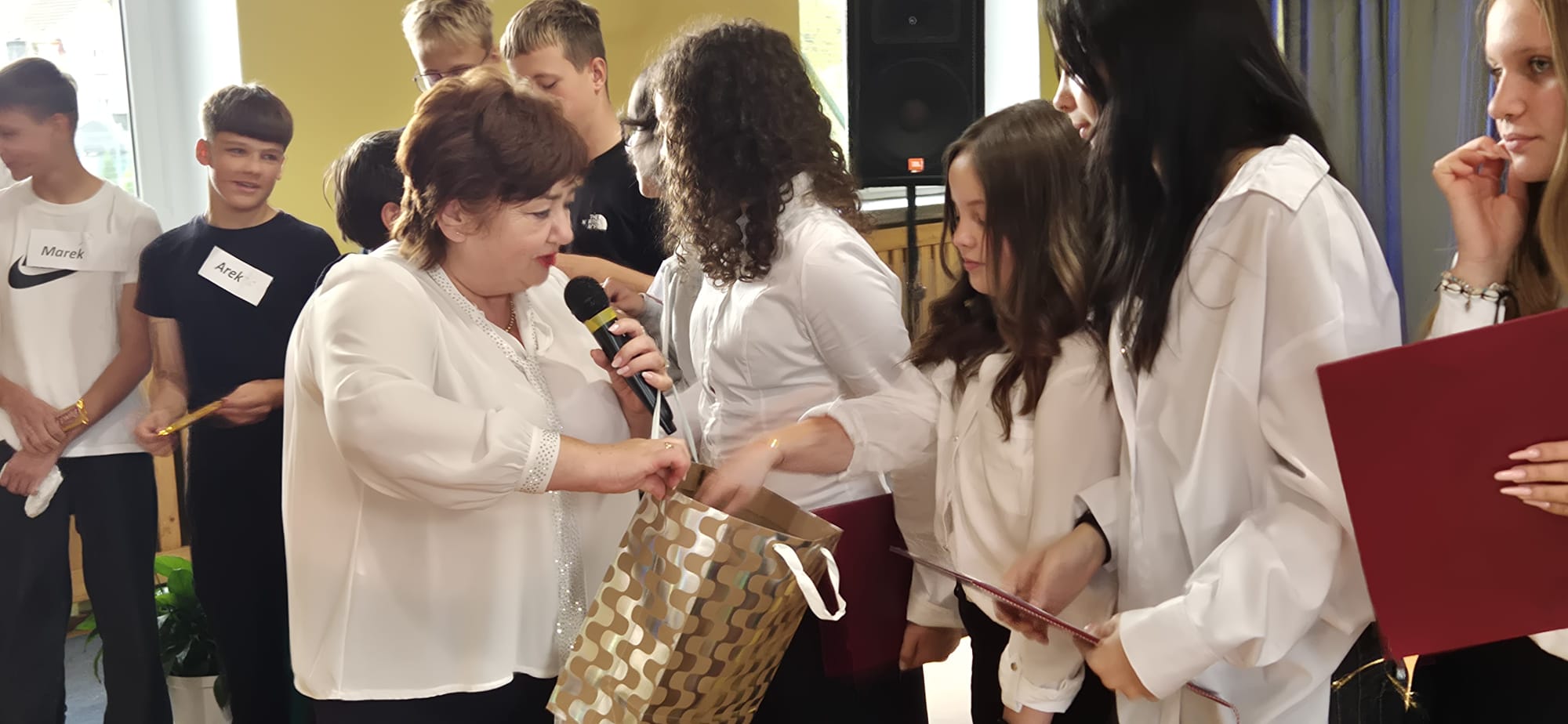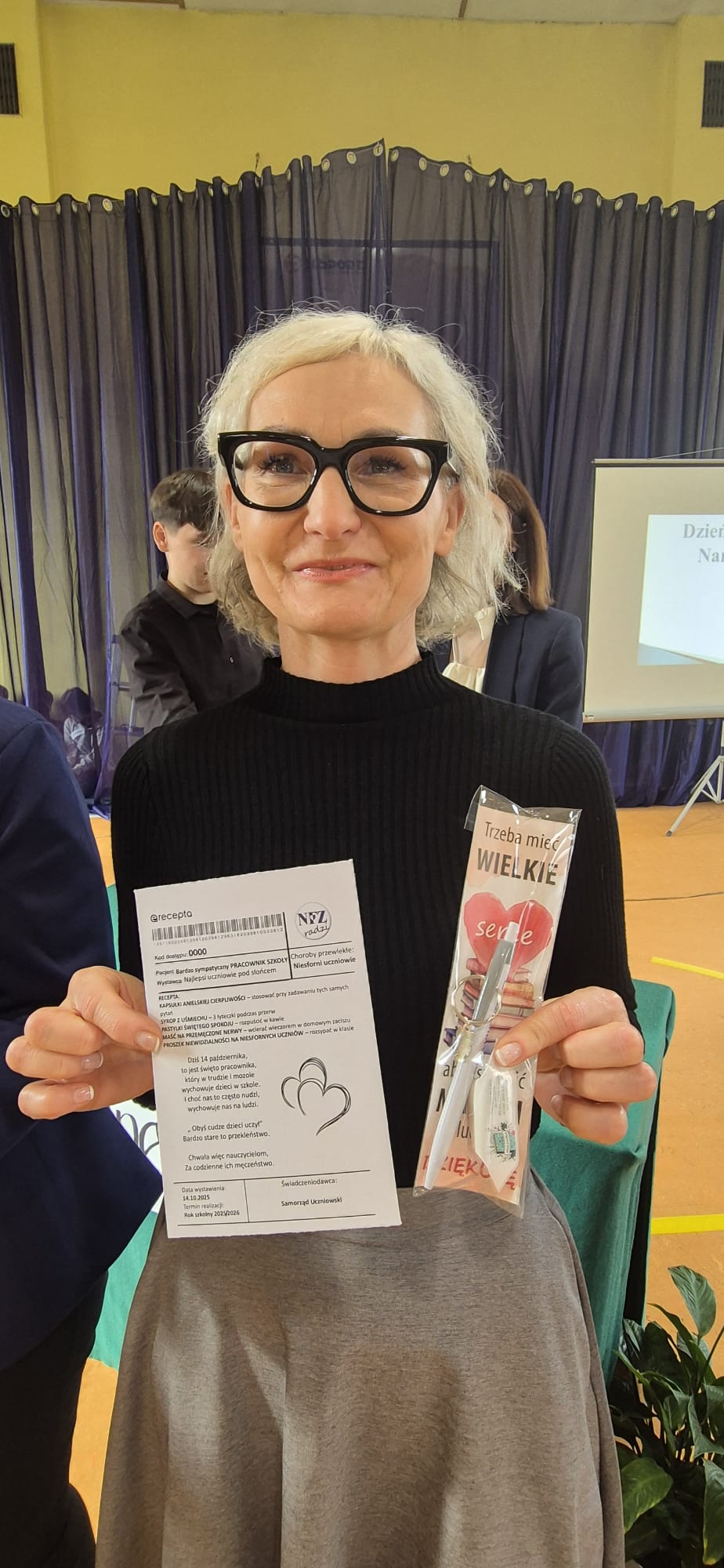 Dodatkowo drobne upominki od Rady Rodziców, a także SU otrzymali nasi „belfrzy”. Bardzo serdecznie dziękujemy za te wyjątkowe oraz niepowtarzalne apele. Wielkie i gromkie brawa dla Was – drodzy uczniowie i nauczyciele! Osobami odpowiedzialnymi za przygotowanie tego niezwykłego wydarzenia byli: pani Jolanta Dziędzioła, pani Iwona Smolińska (przedstawienie), pani Małgorzata Kobylarz (dekoracje), pan Krzysztof Kucharczyk (oprawa muzyczna), pan Piotr Barański (nagłośnienie), pan Daniel Kucharczyk (opracowanie prezentacji), pani Aleksandra Kalinowska (napisy), uczniowie – Kornel Kaczmarczyk i Miłosz Barański (obsługa techniczna) oraz pracownicy obsługi.