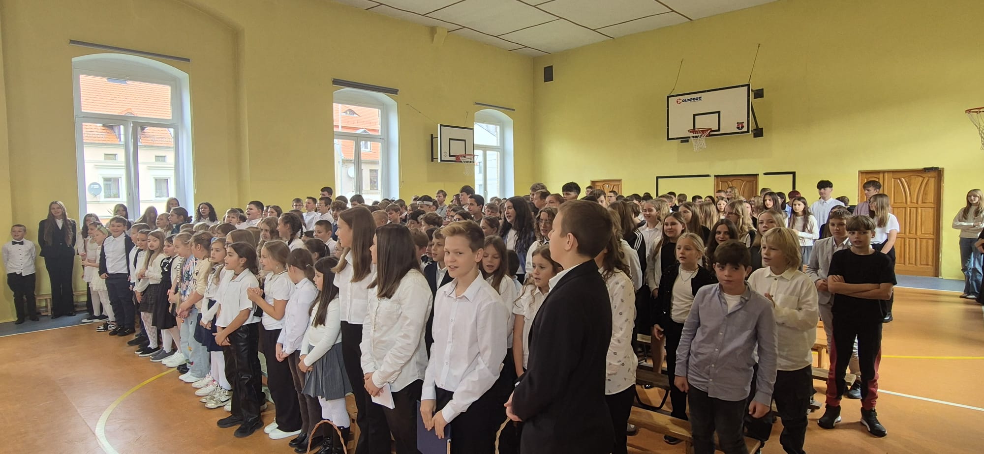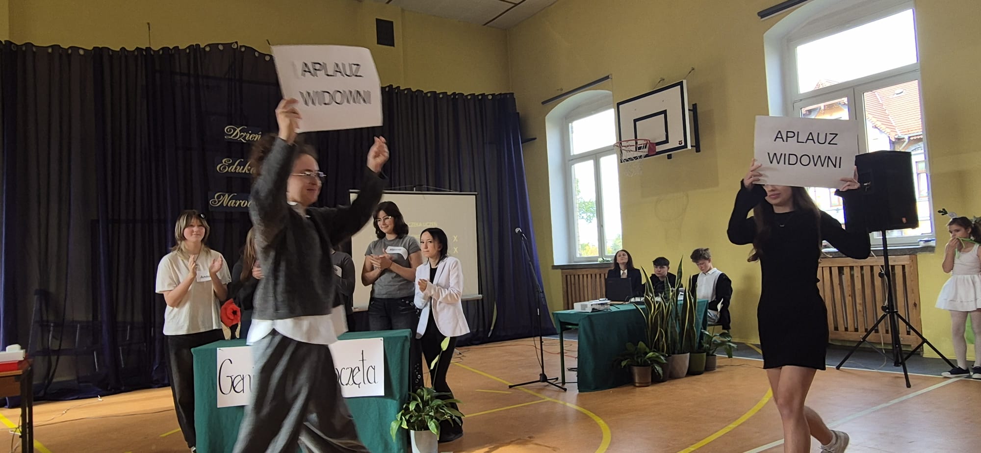 W piątek, 10 października, w SP1 odbyły się uroczyste apele z okazji Dnia Edukacji Narodowej. Na sali gimnastycznej – w dwóch turach – zebrali się wszyscy nasi uczniowie z kl. 1-8, pracownicy obsługi i administracji oraz całe grono pedagogiczne z dyrekcją szkoły na czele. Wśród gości wydarzenia były panie: Katarzyna Kempa-Kujawa – kierownik Referatu Edukacji, Alicja Krężel i Beata Kuźmicka – przedstawicielki Rady Rodziców. Apel zaś składał się z dwóch części: artystycznej (m.in. „Familiady” wykonaniu uczniów kl. 7-8) oraz oficjalnej, czyli wręczenia Nagród: Dyrektora Szkoły i Burmistrza Miasta Lubań.