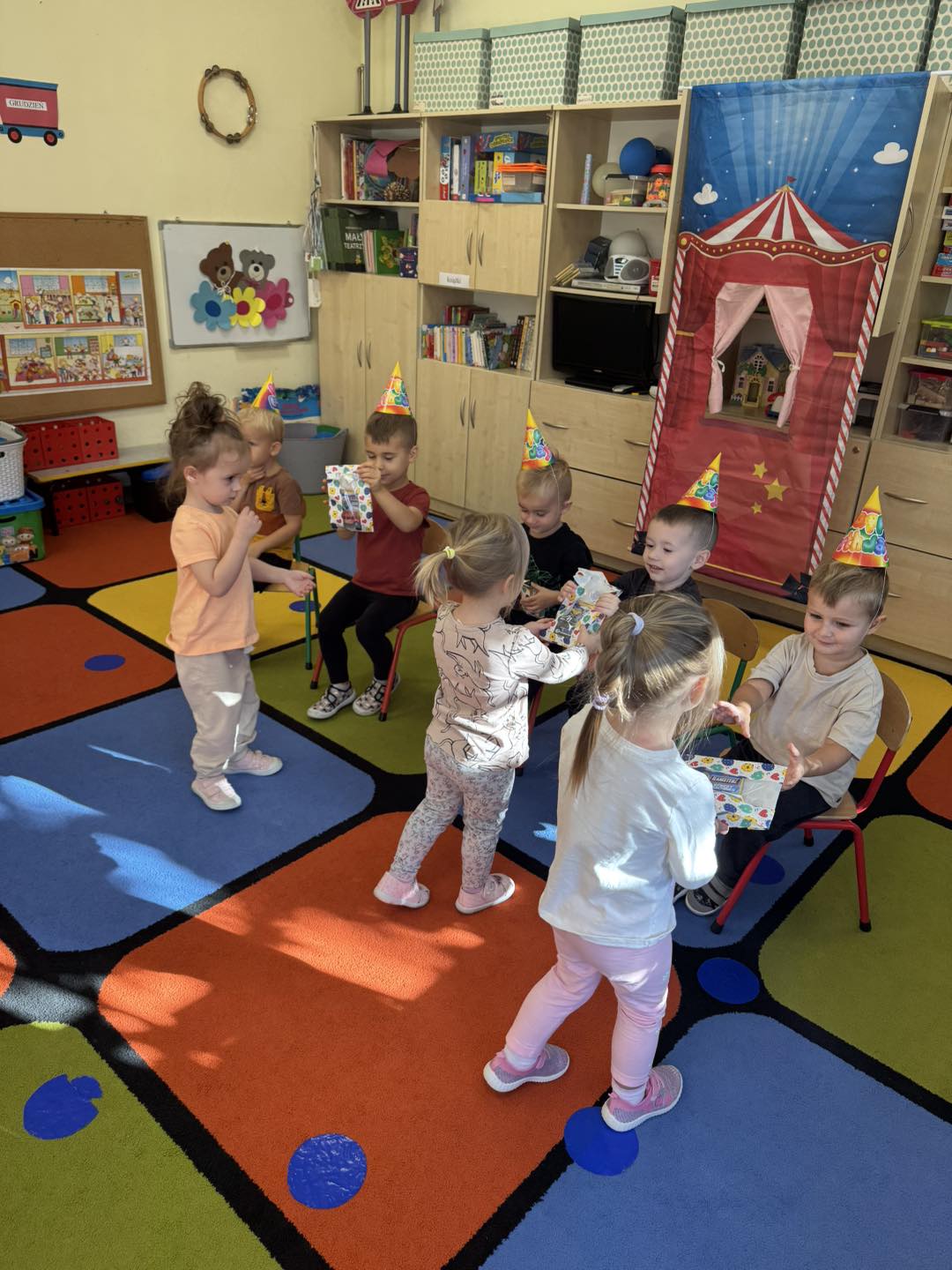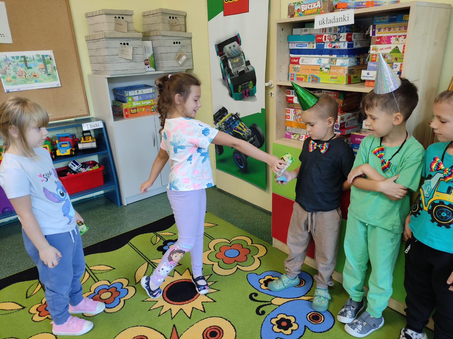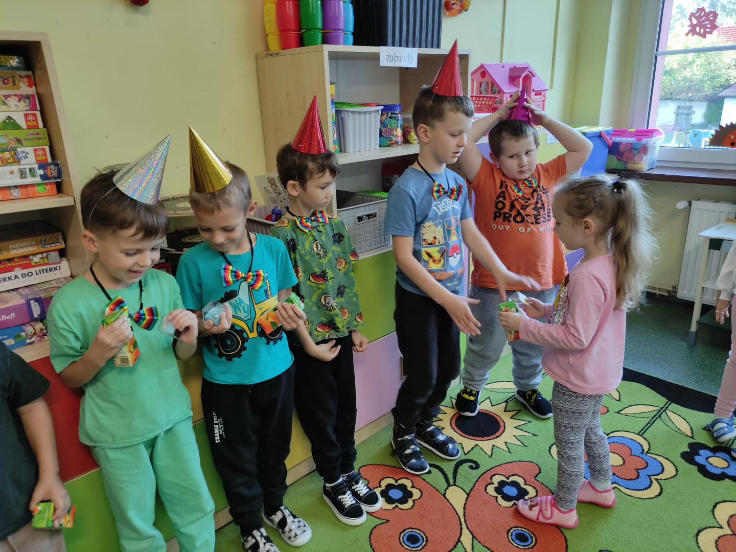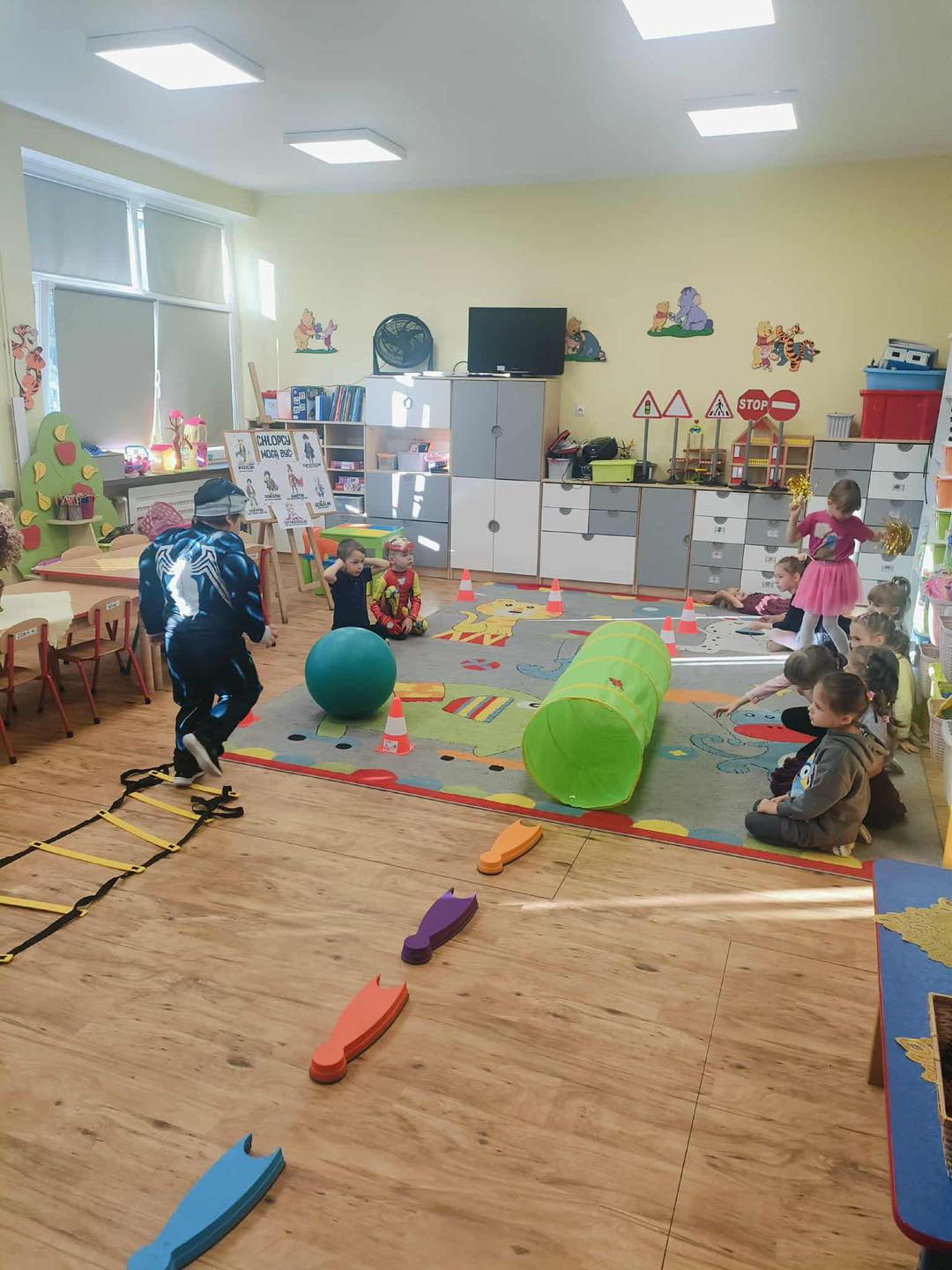 Dzień chłopaka w naszym przedszkolu na sportowo, śpiewająco, tanecznie i bohatersko. W tym dniu we wszystkich grupach dziewczynki wręczały chłopcom upominki, własnoręcznie namalowane laurki, złożyły życzenia, uściskały i ucałowały. Nie brakło także w tym dniu słodkiego poczęstunku dla wszystkich dzieci.