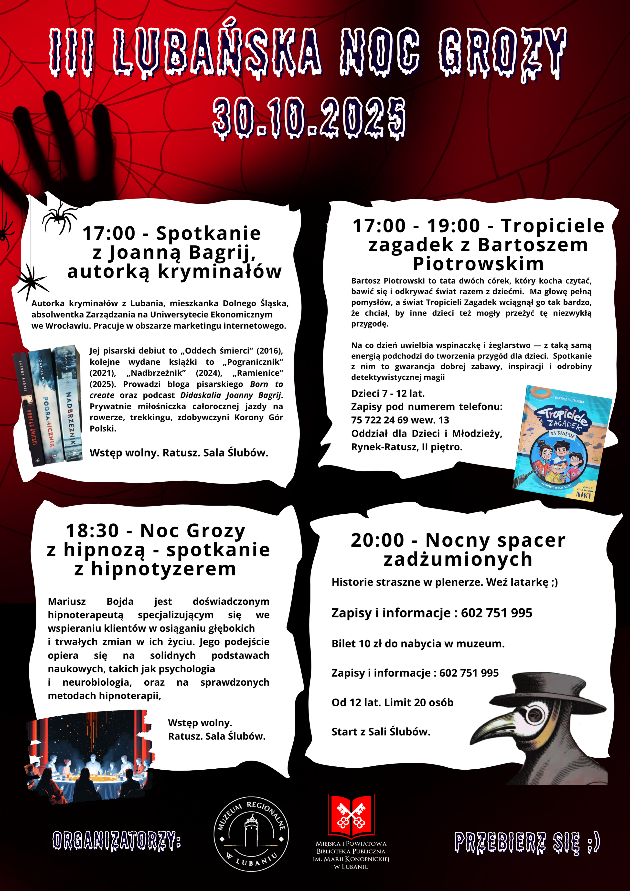 Miejska i Powiatowa Biblioteka Publiczna im Marii Konopnickiej w Lubaniu wraz z Muzeum Regionalnym w Lubaniu zapraszają na III Lubańska Noc Grozy !