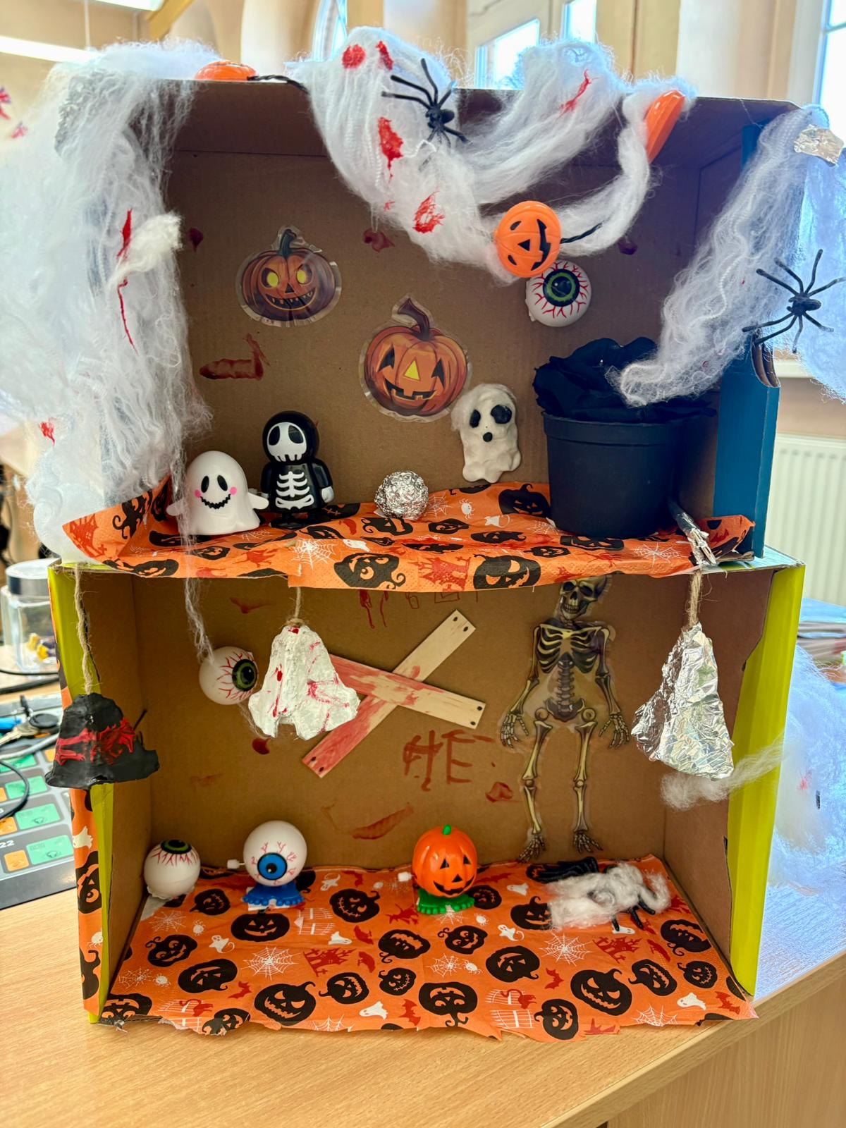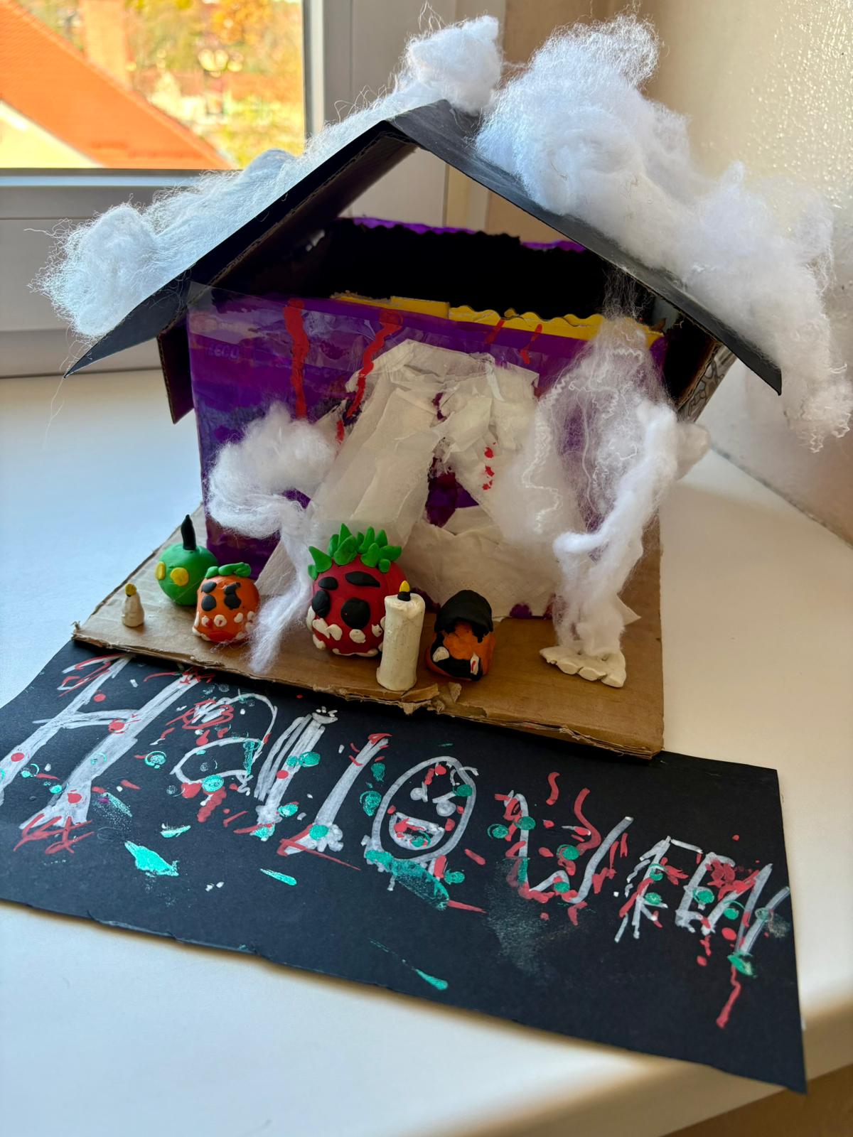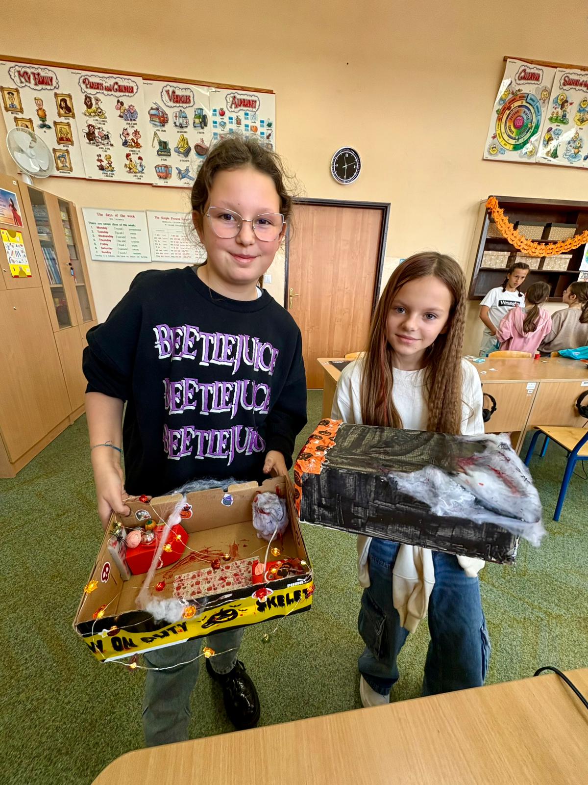 W SP1 nadszedł czas na projektowe szaleństwo z okazji zbliżającego się halloween! Uczniowie z kl. 4-7 na lekcjach języka angielskiego – pod kierunkiem p. Sylwii Matusiak – dali się ponieść wyobraźni, tworząc niesamowite dzieła! Projekt polegał na przygotowaniu tematycznych domków i plakatów związanych z tradycjami halloween. Powstały miniaturowe nawiedzone rezydencje, a każdy szczegół został dopracowany z niezwykłą starannością.
