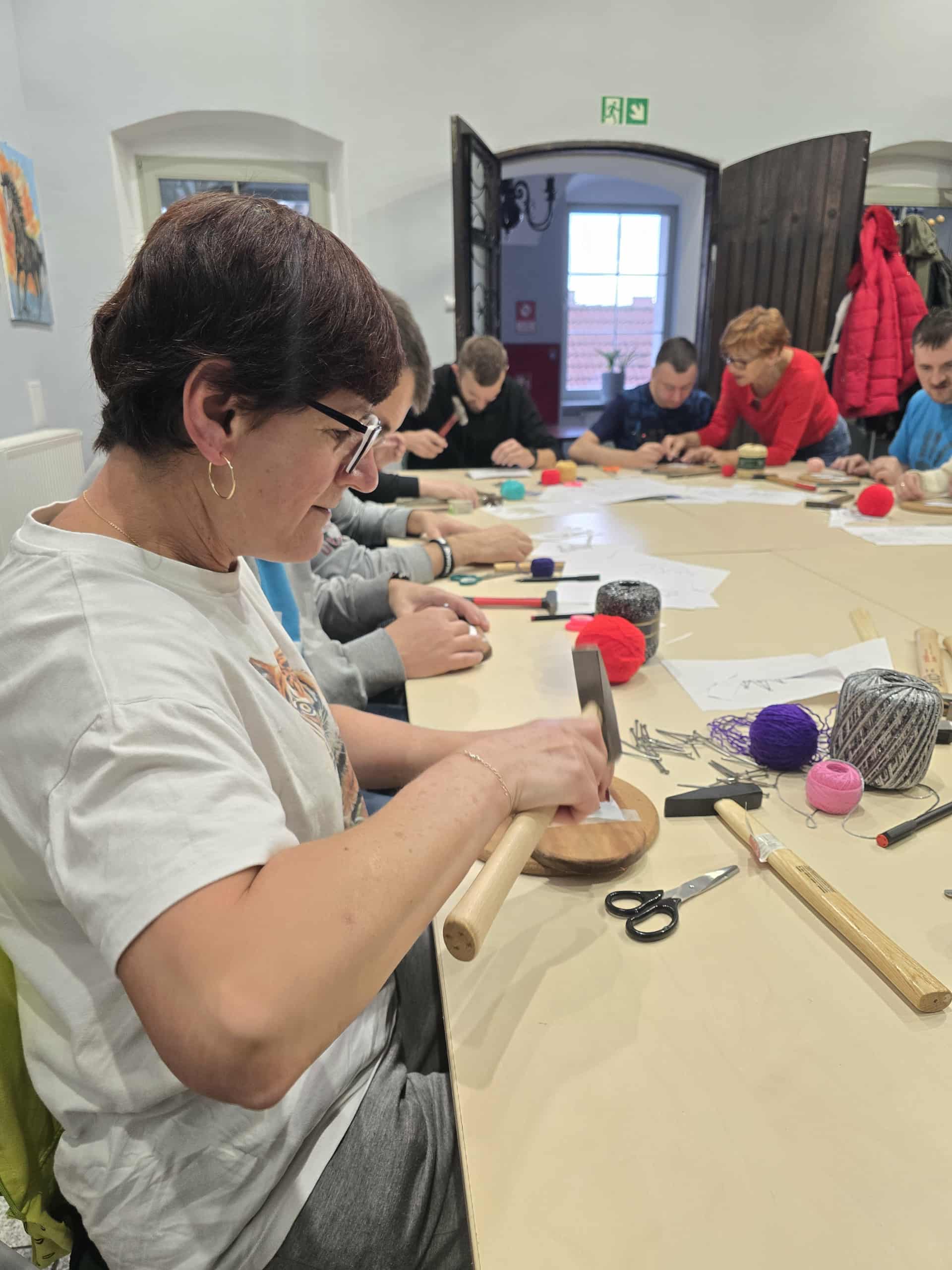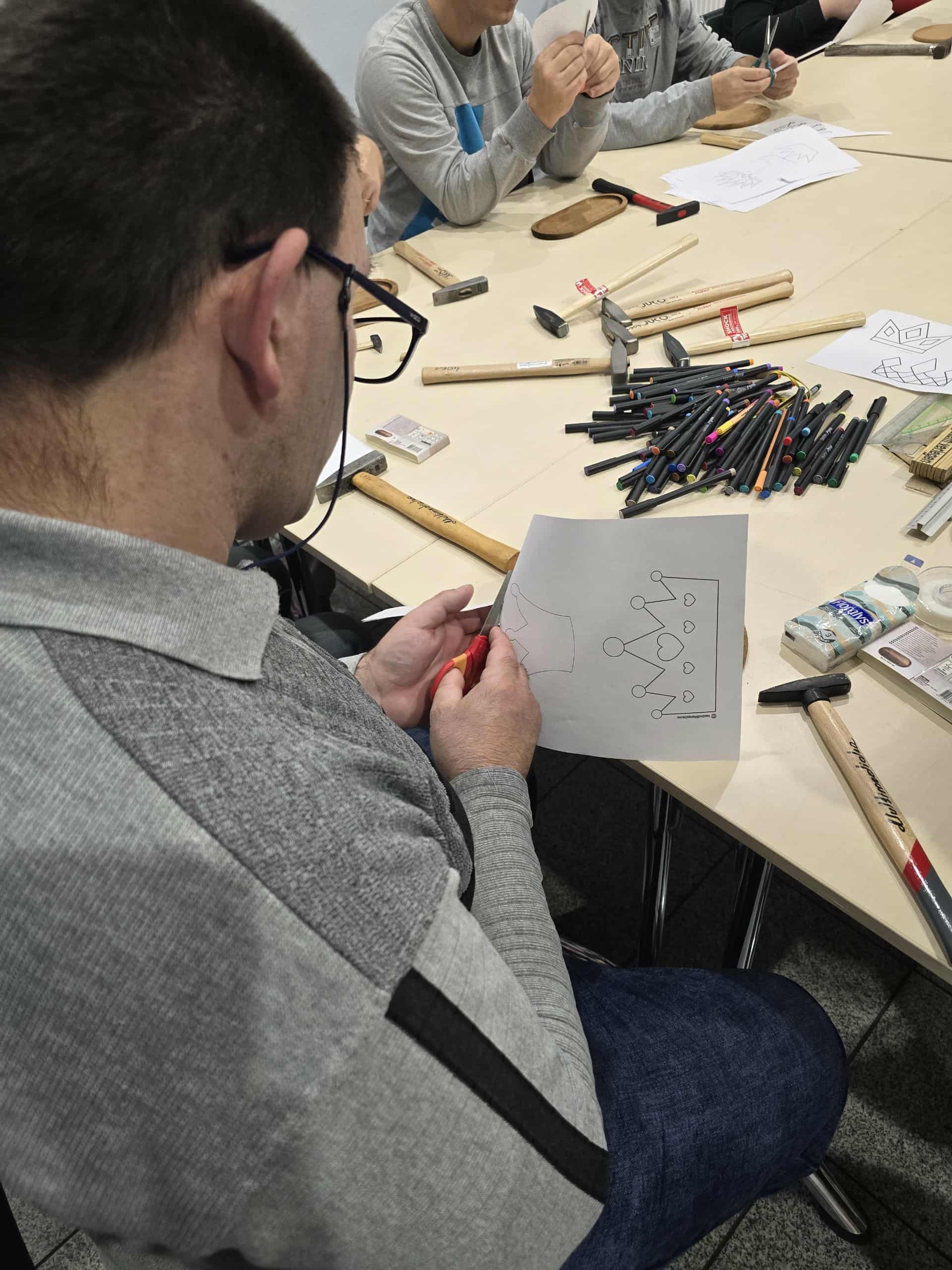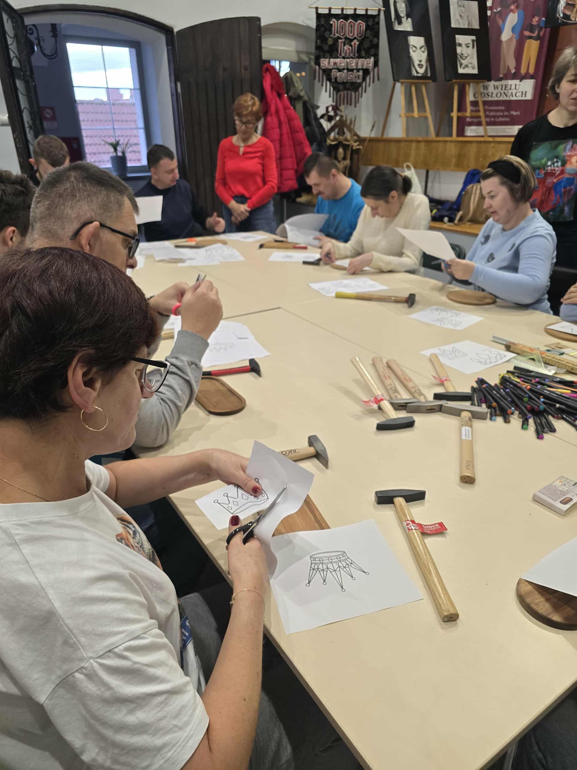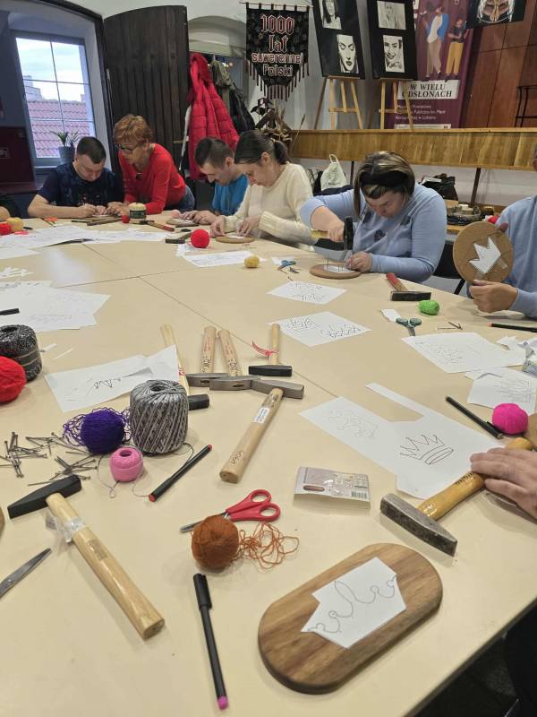 Podczas spotkania uczestnicy sięgnęli po gwoździe, młotki i kolorowe nici, by z ich pomocą stworzyć niezwykłe prace. Tematem przewodnim była korona Chrobrego – symbol siły i historii naszego kraju. Każdy z uczestników realizował własny pomysł, tworząc niepowtarzalne, pełne wyrazu kompozycje.