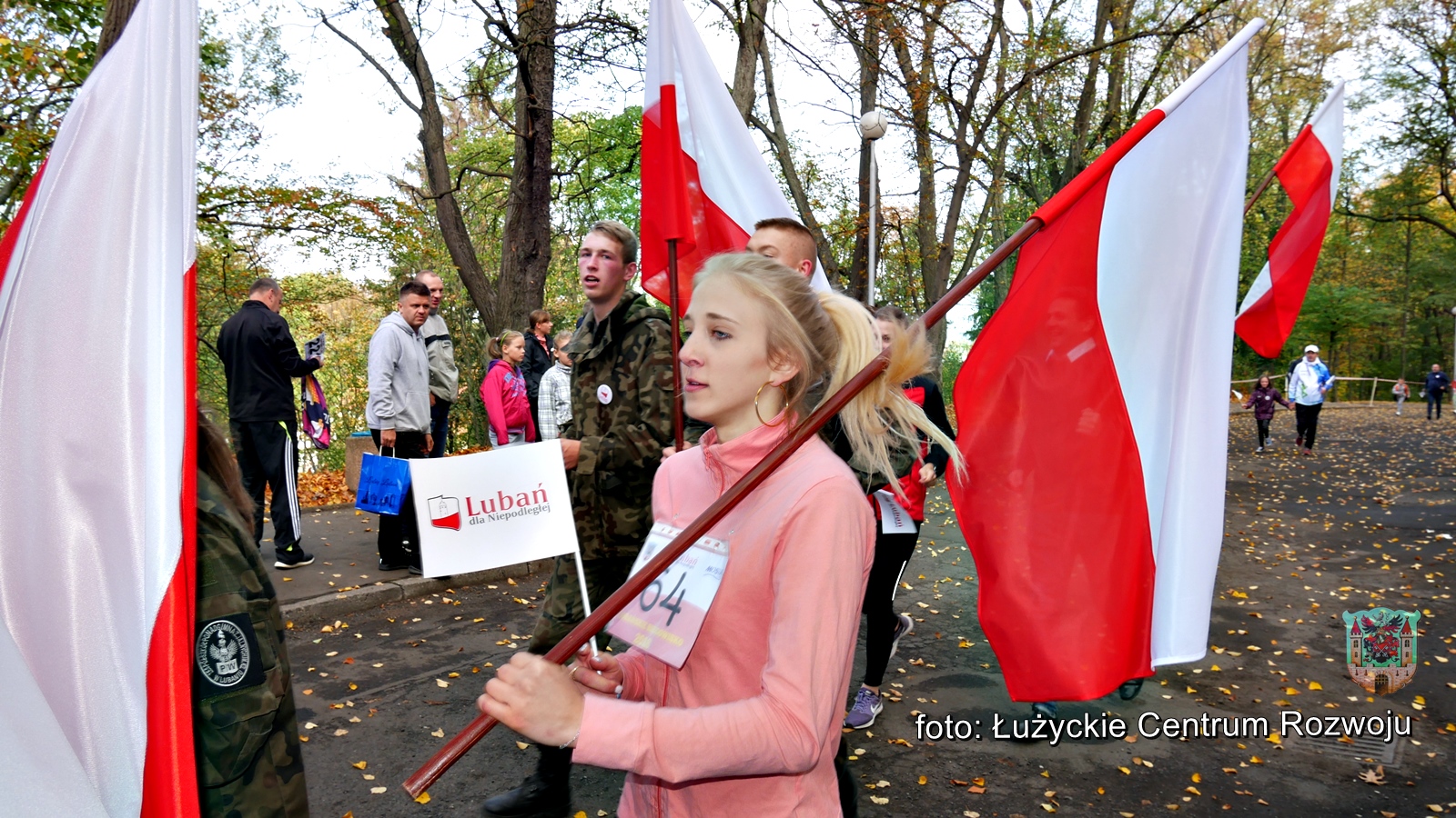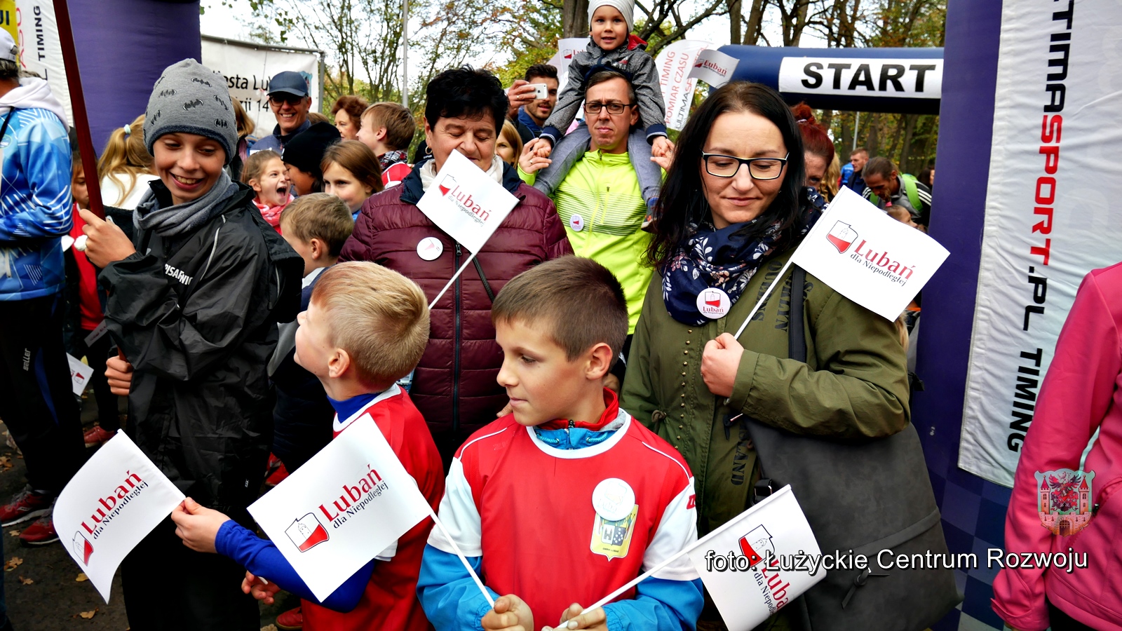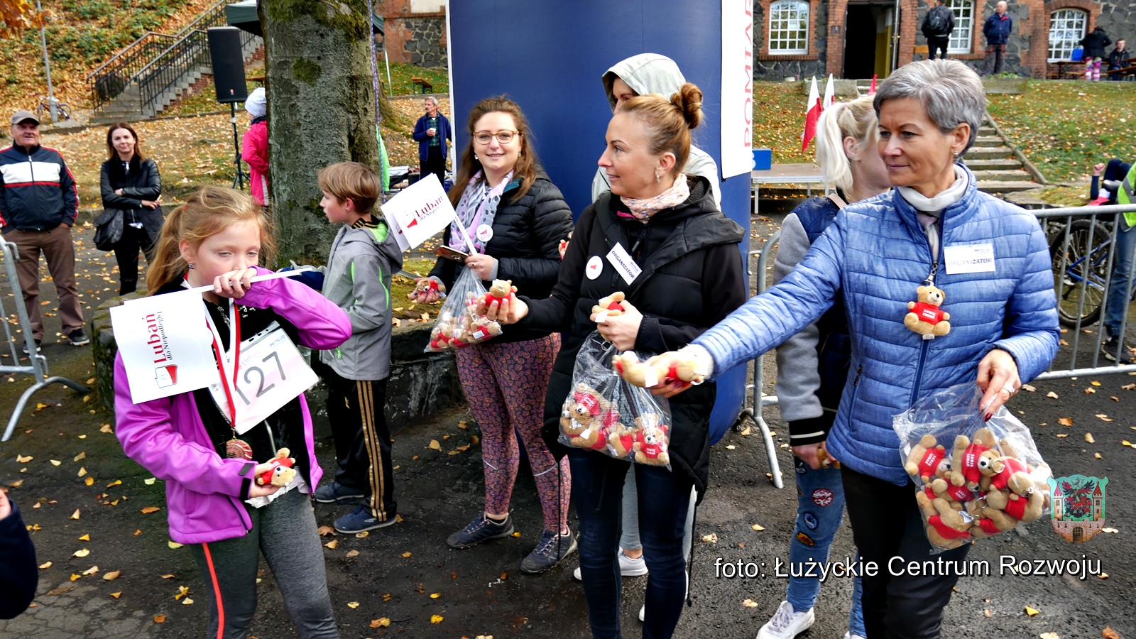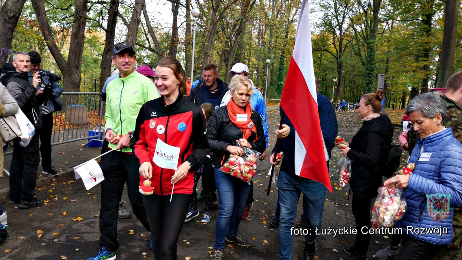 W tym roku, z racji setnej rocznicy odzyskania przez Polskę niepodległości w programie wydarzenia pojawiła się pewna nowość. Punktualnie o godz. 12.00 wystartował bieg/marsz dla rodzin z dziećmi w ramach „Lubań dla Niepodległej”. Maluszki dopiero co stawiające pierwsze kroki, jak również dojrzali lubanianie mający nie jeden kilometr za sobą z dumą i uśmiechem na ustach pokonywali kolejne metry dla uczczenia pamięci o tak niezwykłej karcie w historii naszego narodu. Na czele niepodległościowych biegaczy stanęli z flagami Polski wychowankowie klas proobronnych Zespołu Szkół Ponadgimanazjalnych im. Kombatantów Ziemi Lubańskiej pod opieką Elizy Sławińskiej. Tuż za nimi, w dłoniach pozostałych uczestników powiewały chorągiewki. Biało-czerwona kolumna, wśród której nie zabrakło Burmistrza Miasta Lubań, Arkadiusz Słowińskiego sunęła przez park, aż do mety, gdzie czekały pamiątkowe misie Lubię Lubań. Wszystkim spodobała się inicjatywa i ochoczo zapewniali, że za rok chętnie w podobny sposób uczciliby 101 rocznicę odzyskania niepodległości.