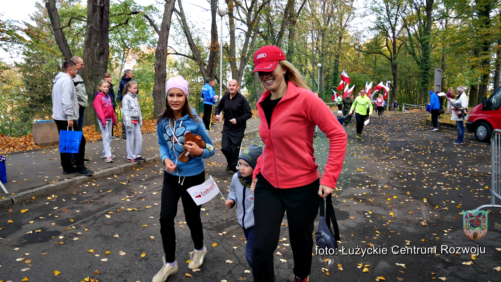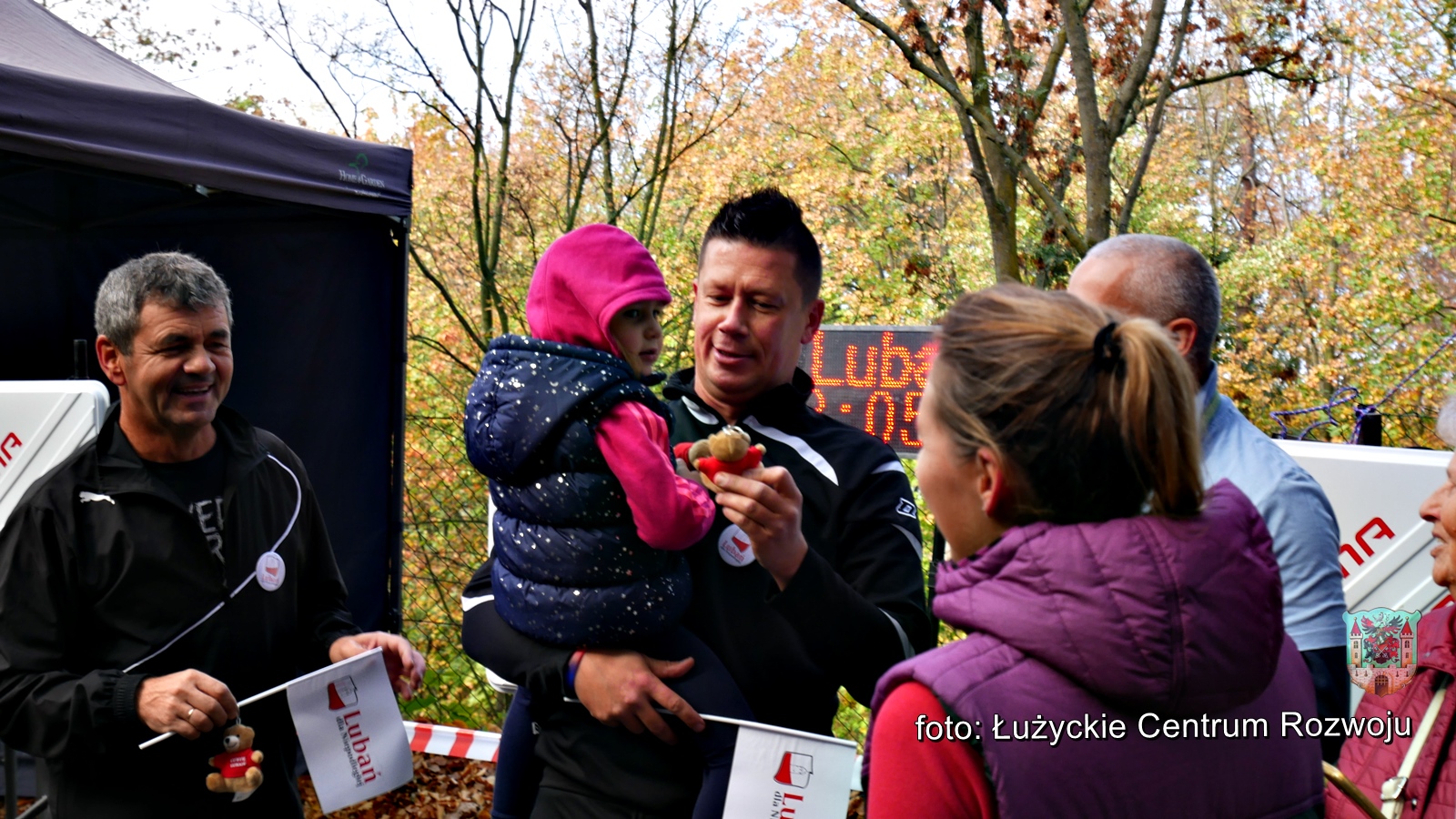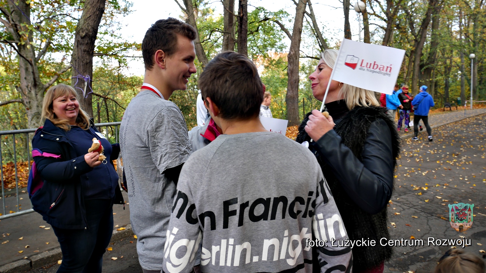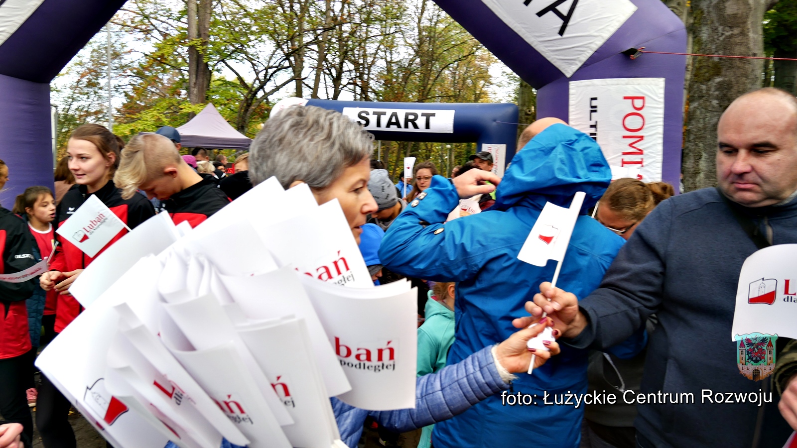 W tym roku, z racji setnej rocznicy odzyskania przez Polskę niepodległości w programie wydarzenia pojawiła się pewna nowość. Punktualnie o godz. 12.00 wystartował bieg/marsz dla rodzin z dziećmi w ramach „Lubań dla Niepodległej”. Maluszki dopiero co stawiające pierwsze kroki, jak również dojrzali lubanianie mający nie jeden kilometr za sobą z dumą i uśmiechem na ustach pokonywali kolejne metry dla uczczenia pamięci o tak niezwykłej karcie w historii naszego narodu. Na czele niepodległościowych biegaczy stanęli z flagami Polski wychowankowie klas proobronnych Zespołu Szkół Ponadgimanazjalnych im. Kombatantów Ziemi Lubańskiej pod opieką Elizy Sławińskiej. Tuż za nimi, w dłoniach pozostałych uczestników powiewały chorągiewki. Biało-czerwona kolumna, wśród której nie zabrakło Burmistrza Miasta Lubań, Arkadiusz Słowińskiego sunęła przez park, aż do mety, gdzie czekały pamiątkowe misie Lubię Lubań. Wszystkim spodobała się inicjatywa i ochoczo zapewniali, że za rok chętnie w podobny sposób uczciliby 101 rocznicę odzyskania niepodległości.