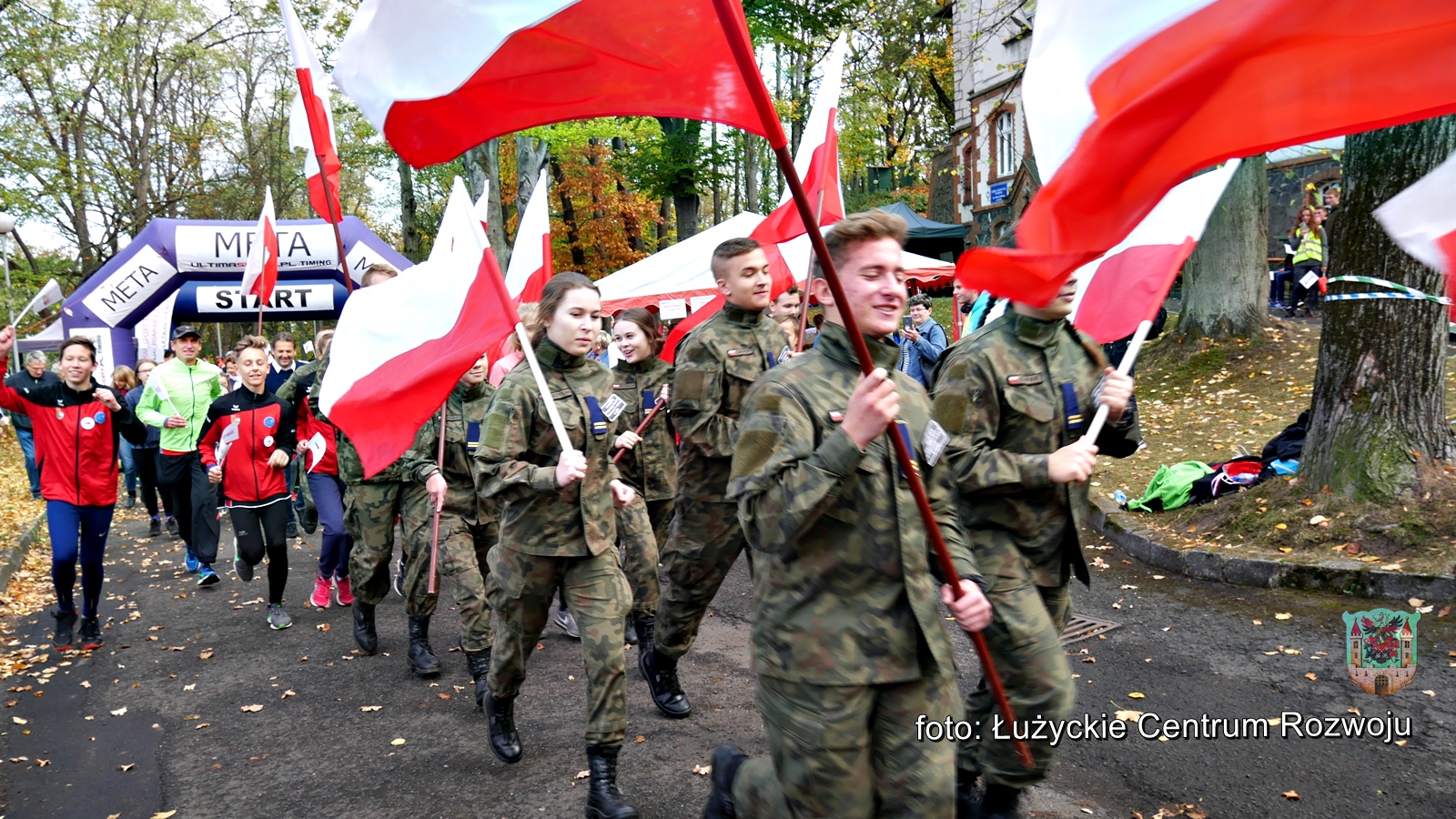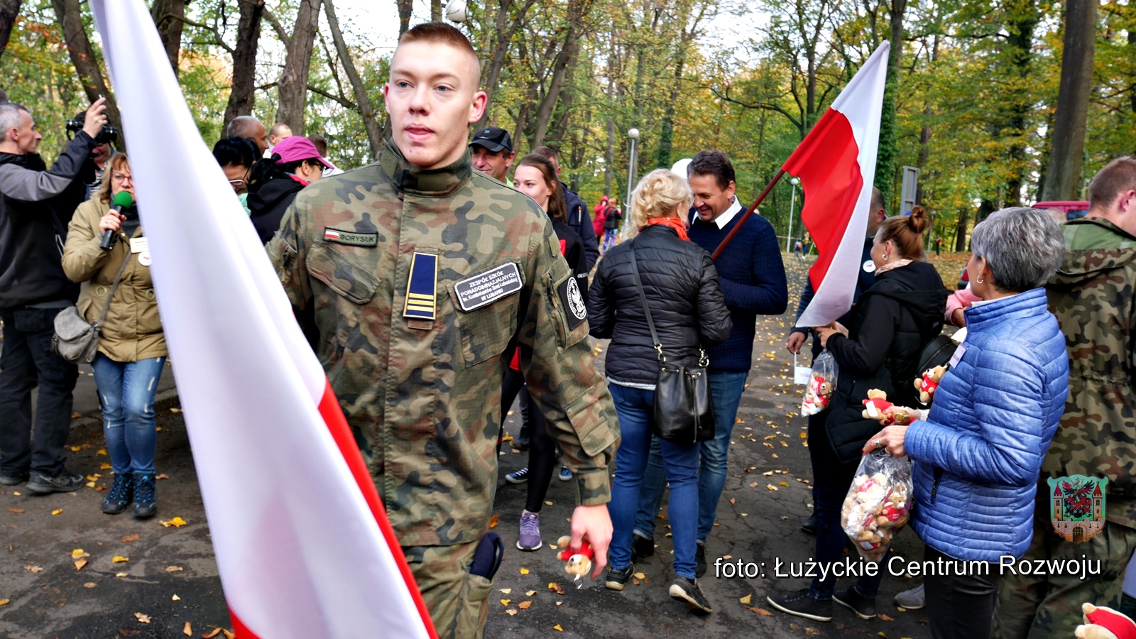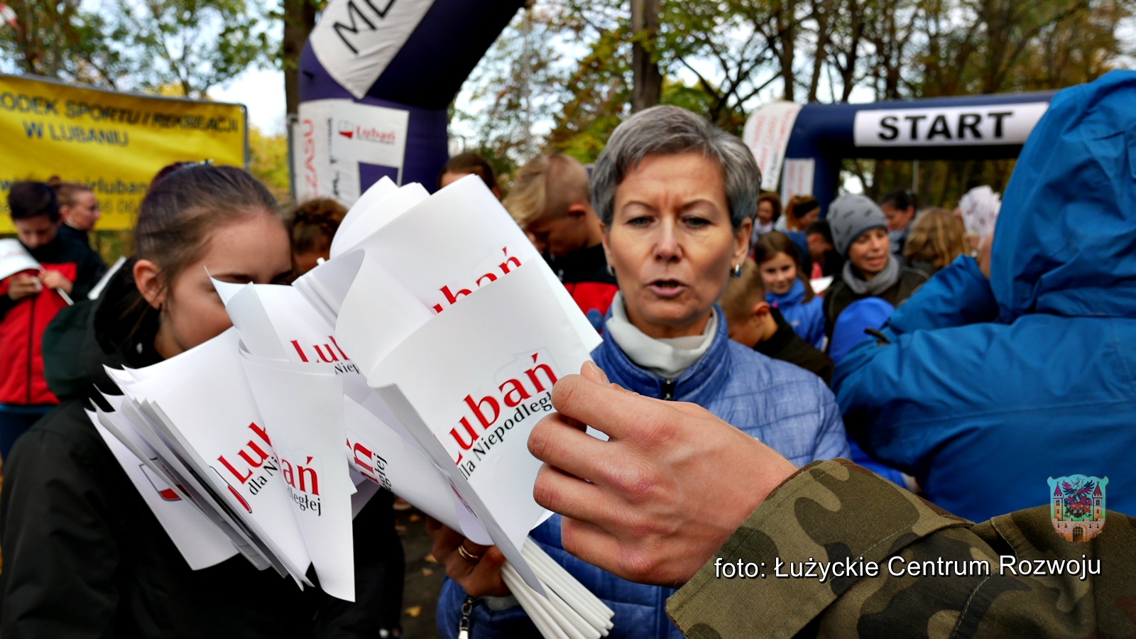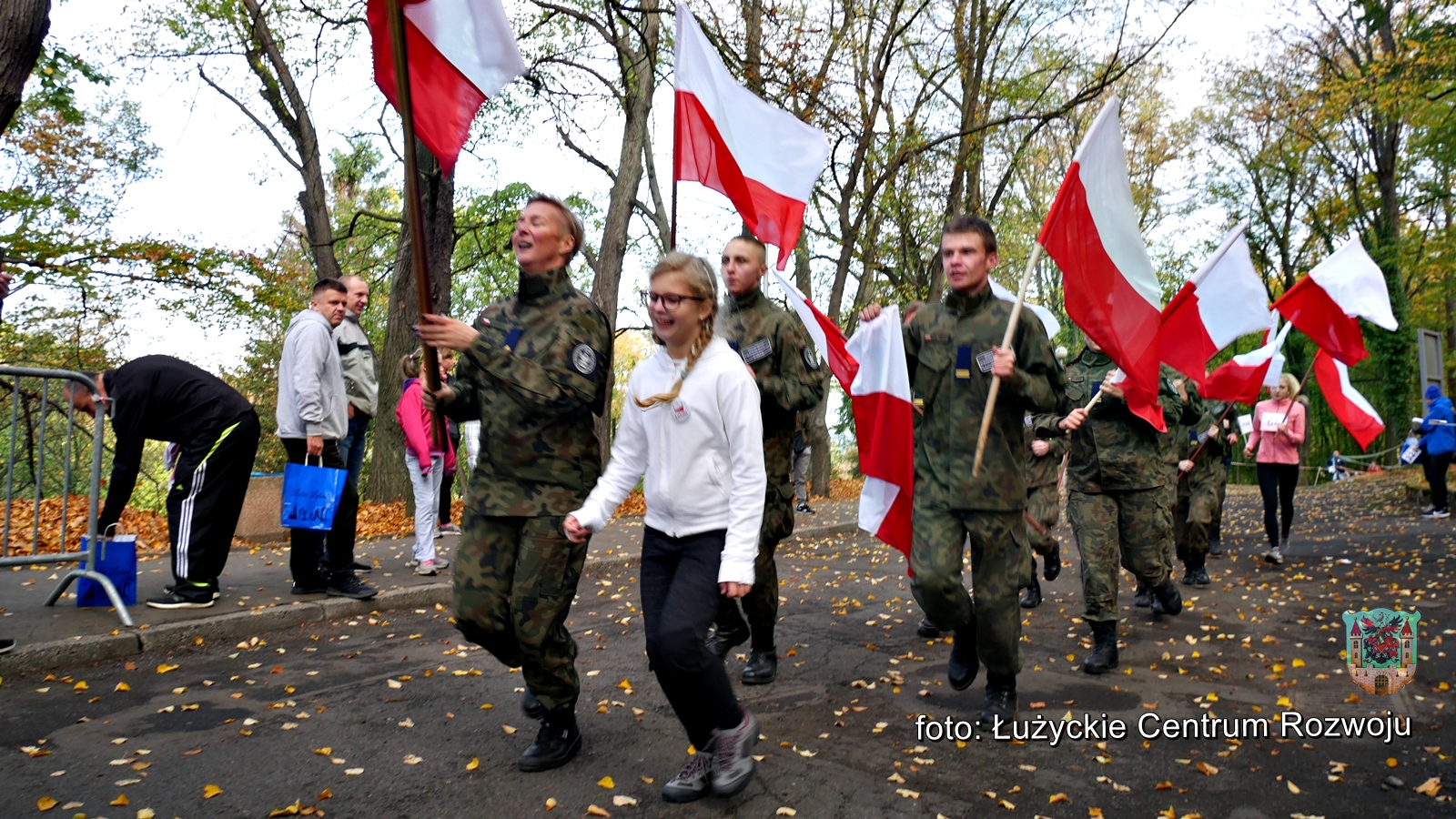 W tym roku, z racji setnej rocznicy odzyskania przez Polskę niepodległości w programie wydarzenia pojawiła się pewna nowość. Punktualnie o godz. 12.00 wystartował bieg/marsz dla rodzin z dziećmi w ramach „Lubań dla Niepodległej”. Maluszki dopiero co stawiające pierwsze kroki, jak również dojrzali lubanianie mający nie jeden kilometr za sobą z dumą i uśmiechem na ustach pokonywali kolejne metry dla uczczenia pamięci o tak niezwykłej karcie w historii naszego narodu. Na czele niepodległościowych biegaczy stanęli z flagami Polski wychowankowie klas proobronnych Zespołu Szkół Ponadgimanazjalnych im. Kombatantów Ziemi Lubańskiej pod opieką Elizy Sławińskiej. Tuż za nimi, w dłoniach pozostałych uczestników powiewały chorągiewki. Biało-czerwona kolumna, wśród której nie zabrakło Burmistrza Miasta Lubań, Arkadiusz Słowińskiego sunęła przez park, aż do mety, gdzie czekały pamiątkowe misie Lubię Lubań. Wszystkim spodobała się inicjatywa i ochoczo zapewniali, że za rok chętnie w podobny sposób uczciliby 101 rocznicę odzyskania niepodległości.