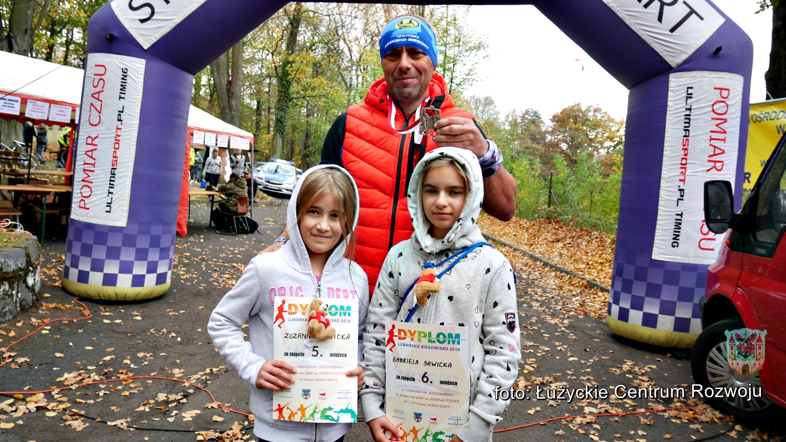 Już po raz czwarty w jesiennej aurze odbył się w Lubaniu Bieg Uliczny Lubańskie Biegowisko. Wydarzenie na stałe wpisało się w kalendarz lubańskich wydarzeń i z roku na rok rośnie w siłę. Ma już stałych bywalców i jak się okazuje liderów podium w kategorii OPEN. W Lubańskim Biegowisku 2018, podobnie jak w poprzedniej edycji zwyciężyli spośród mężczyzn Łukasz Klatka i wśród kobiet Elżbieta Kowalewska. Zanim jednak zaprawieni biegacze podjęli tego dnia 10-kilometrowy dystans park wypełniło najmłodsze pokolenie Lubania i okolic. Biegi dzieci i młodzieży dostarczyły wszystkim wielu emocji. Sześcio-, siedmioletni debiutanci otworzyli zawody biegiem na 300 metrów. I choć dystans niewielki, dla nich był on prawdziwym wyzwaniem. Doping rodziców, kolegów, koleżanek to najlepsza z możliwych motywacji. Tym samym biegi dzieci i młodzieży przebiegały w iście sportowej atmosferze, a radość każdego małego biegacza z otrzymanego medalu była wprost bezcenna. Młodzież również pokazała się z jak najlepszej strony. Świetna kondycja, brak nadmiernej rywalizacji i wzajemny doping mówiły same za siebie. Co ważne, każdy z uczestników otrzymał medal, ale też możliwość sprawdzenia swoich sił i przeżycia sportowych emocji. Przy tym pierwsza szóstka w każdej kategorii wiekowej otrzymała pamiątkowe dyplomy, zaś podium statuetki. Warto nadmienić, że słodkie bułki, jako uzupełniacze spalonych kalorii cieszyły się niezłym braniem zarówno wśród najmłodszych, jak i tych trochę starszych. W biegach dzieci i młodzieży wzięło udział 105 uczestników.