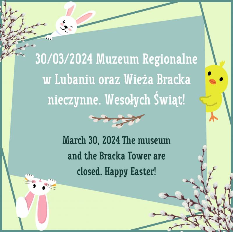 March 30, 2024 The Regional Museum in Lubań and the Bracka Tower are closed. Happy Easter!