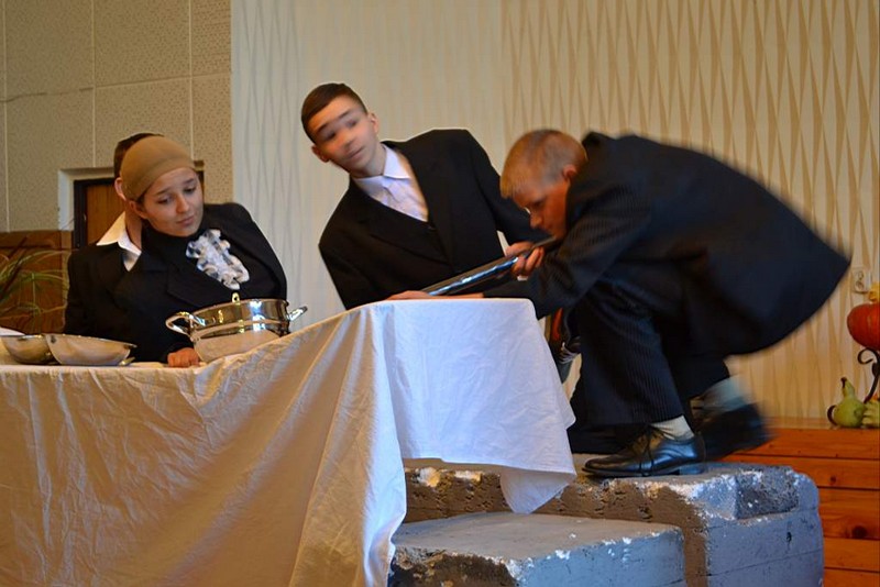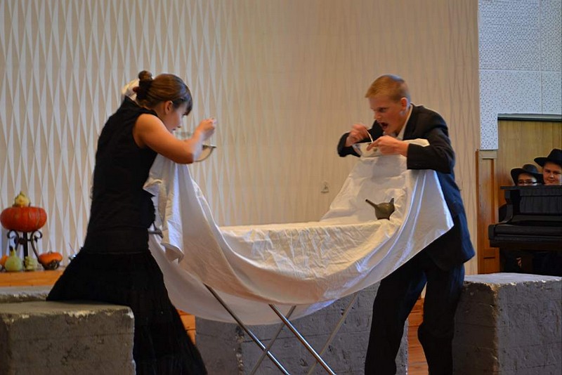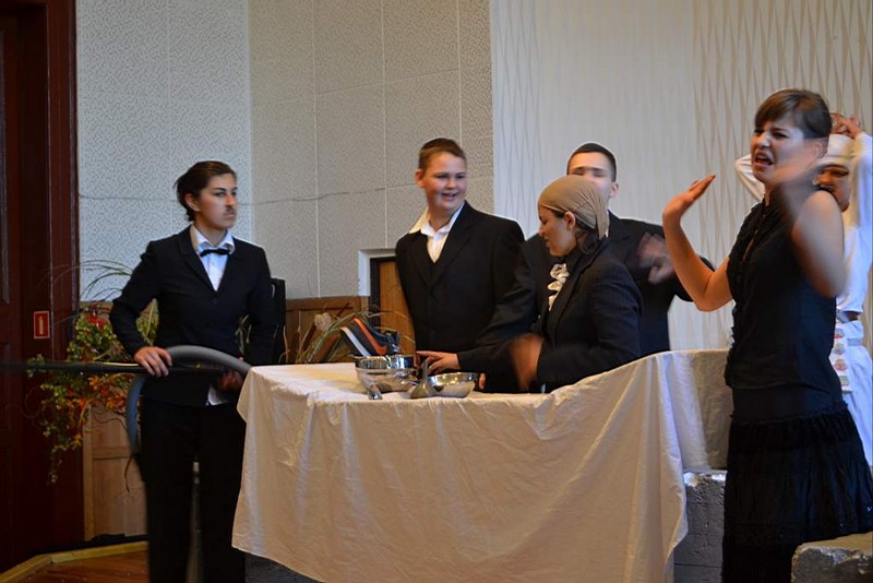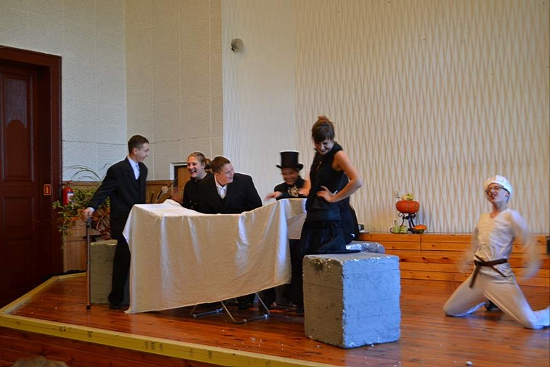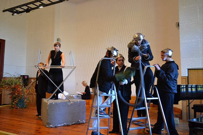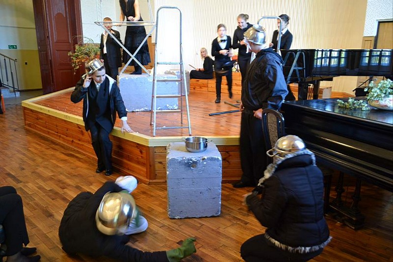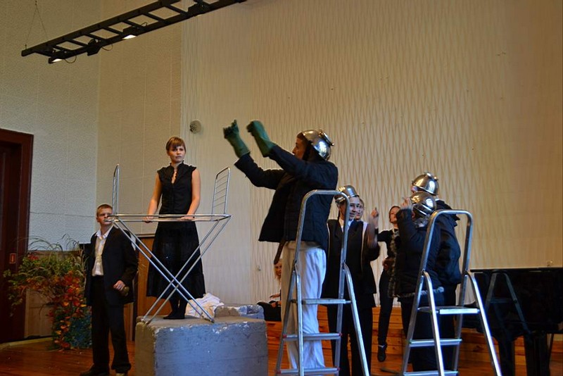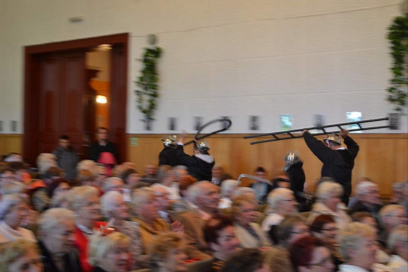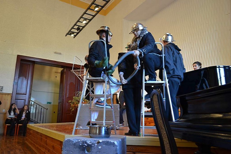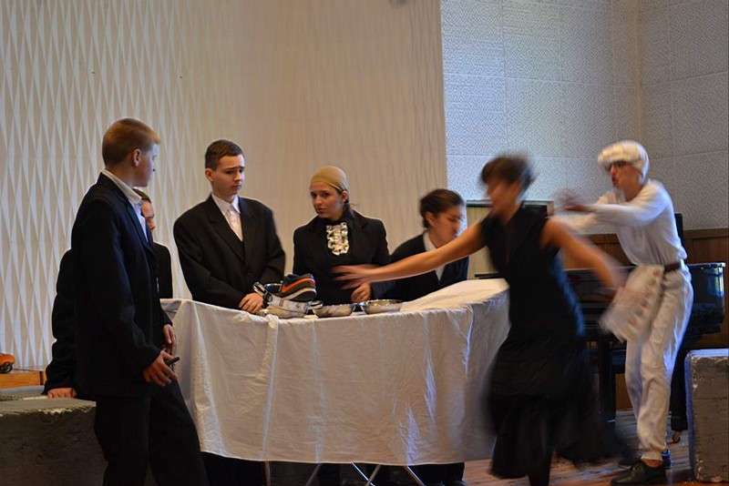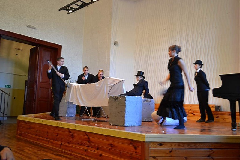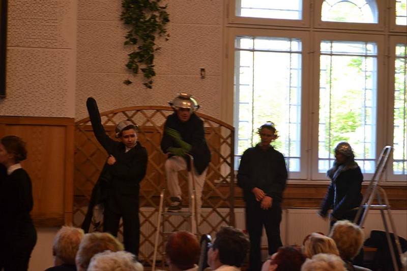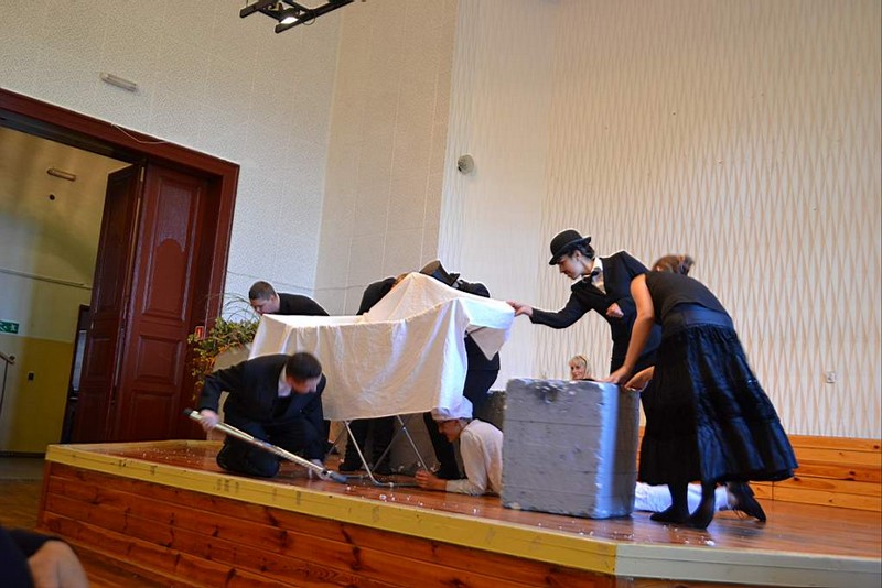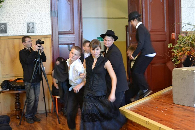 Pomimo pewnych trudności technicznych (konieczność gry w trzech równoległych planach, ograniczenie typowych efektów scenicznych) aktorzy stanęli na wysokości zadania, a repertuar się sprawdził. Cóż, motyw „robienia z igły wideł” bawi widocznie różne pokolenia, bo wiekowa publiczność aktywnie wspierała działania twórcze gimnazjalistów, spontanicznie reagując oklaskami i wybuchami śmiechu na różne momenty akcji. Szczególnym powodzeniem cieszył się przemarsz trupy teatralnej wokół widowni w rytm powszechnie znanej i lubianej melodii „Orkiestr dętych”.