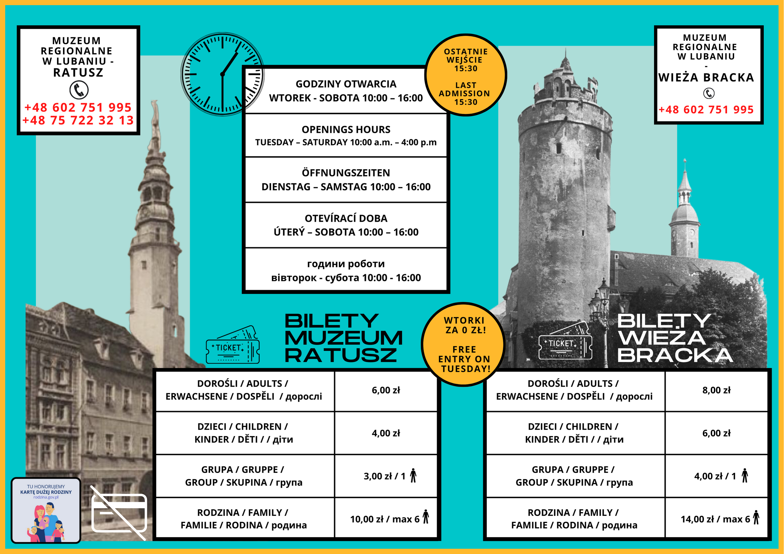 Tel. +48 602 751 995 (Ratusz i Wieża Bracka)