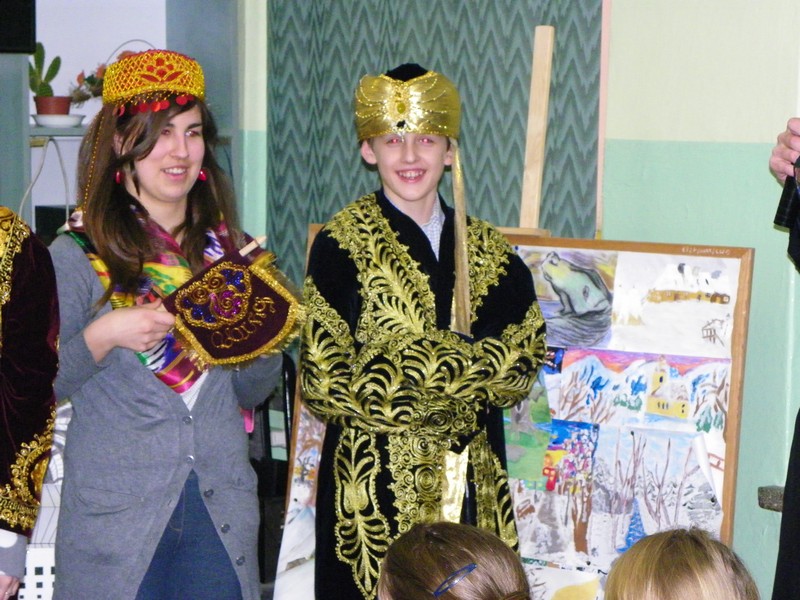 Ksiądz Andrzej podczas wizyty przybliżył gimnazjalistom kulturę Uzbekistaniu oraz pokazał stroje ludowe – czapan i tjubitjejkę. Uczniowie kolejny raz mieli możliwość poznania odmienności i różnorodności ras, kultur i religii – tym razem Azji Środkowej.