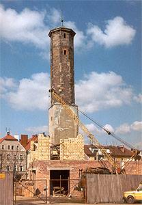 Z niewyjaśnionych przyczyn rozpoczęto pod koniec lat 50-tych wyburzanie poszczególnych kamienic (zdjęcia z 1951 r.), aby pozostawić na długie lata samotny kikut Wieży Kramarskiej.