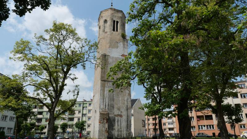 Stojąca na placu Lompy wieża jest pozostałością po dawnym kościele Świętej Trójcy, który od XIII w. aż do 14 VII 1760 r., kiedy to padł ofiarą pożaru, pełnił funkcję świątyni parafialnej.